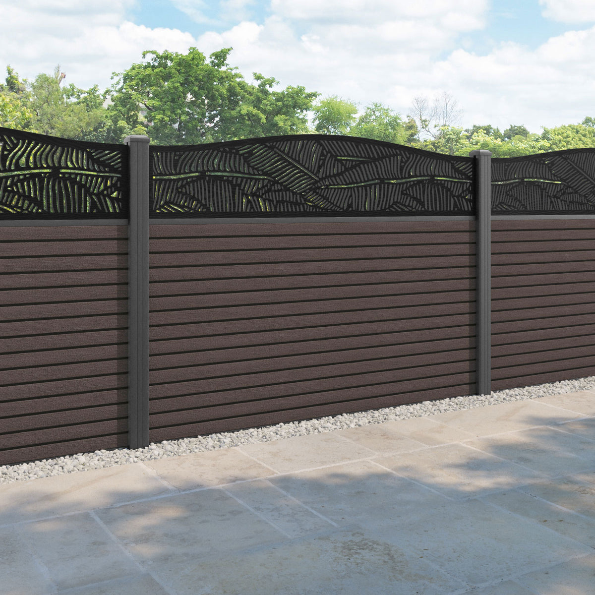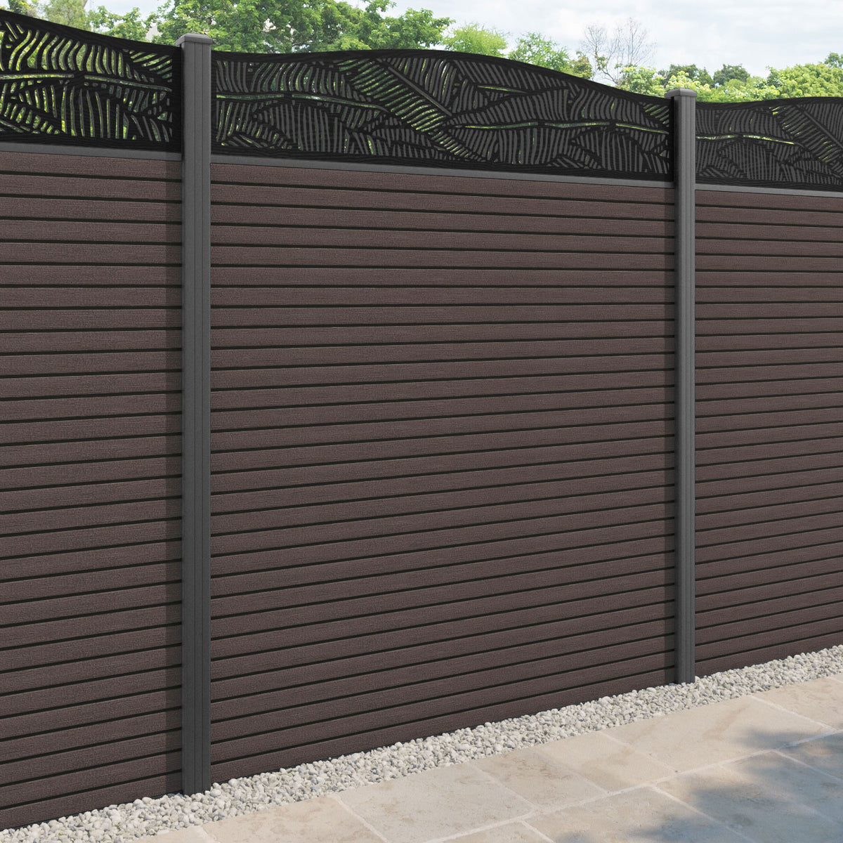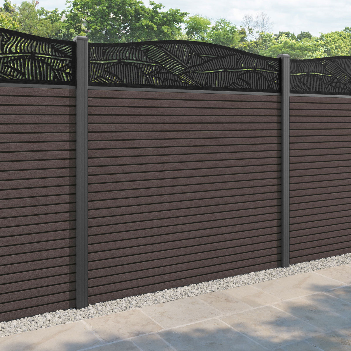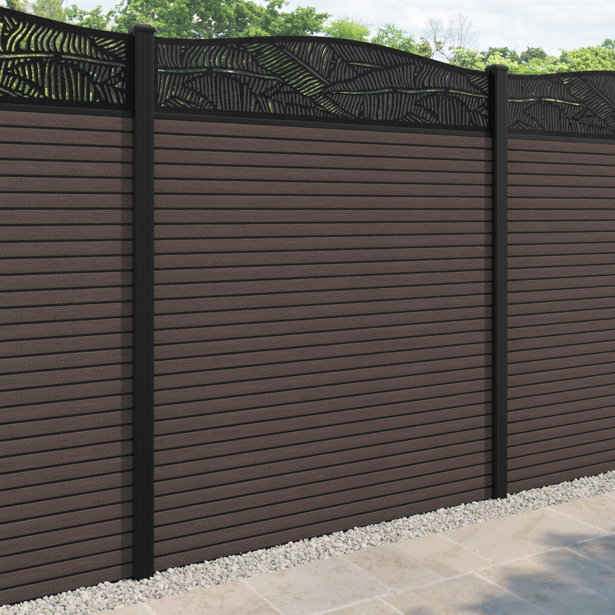 Hudson Feather Curved Top Fence Panel Mid Brown - with our aluminium posts