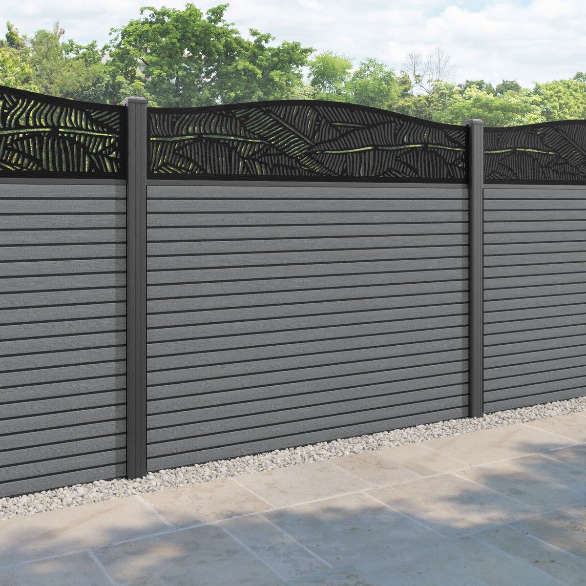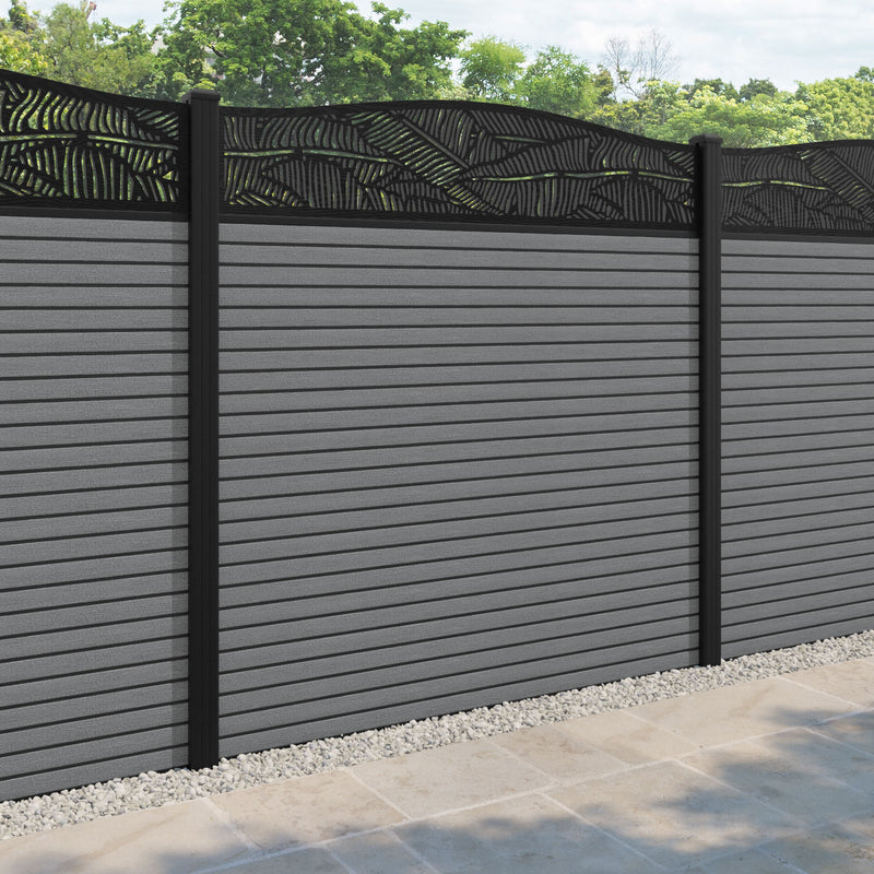 Hudson Feather Curved Top Fence Panel Mid Grey - with our aluminium posts