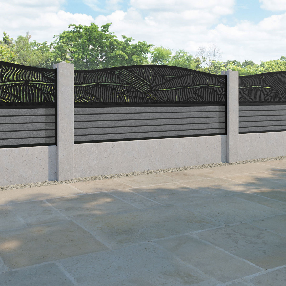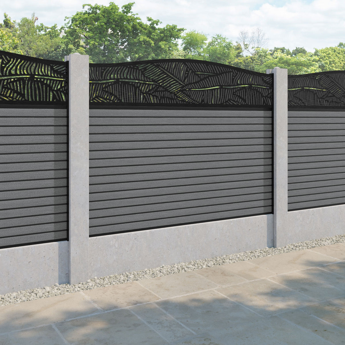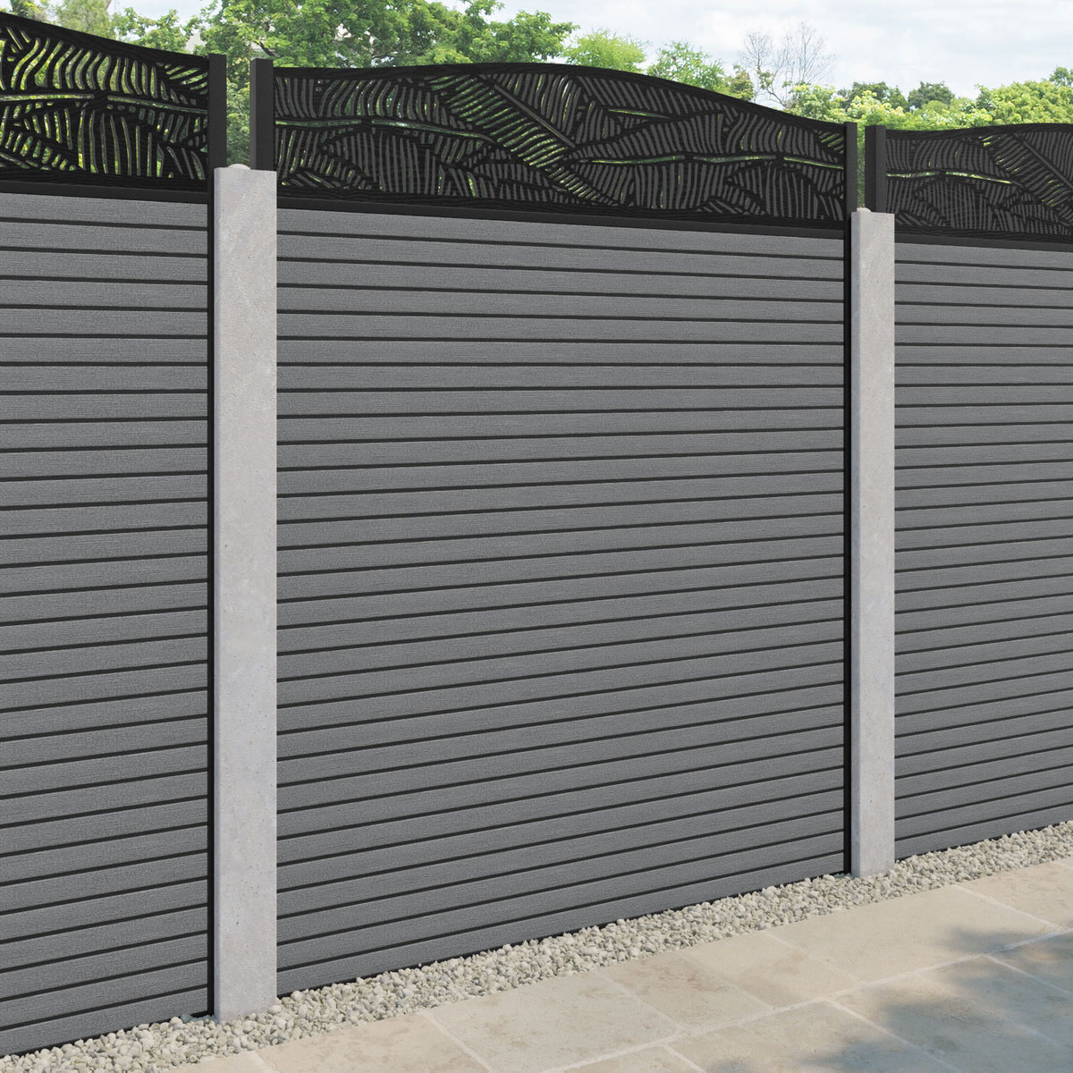 Our Feather premium composite fence screens, 18mm thick mid grey fence slats and high-grade composite channels are the perfect choice if you have existing concrete posts. Create an elegant, versatile, and eco-friendly fencing solution. Not only is this fencing responsibly sourced, it is also durable, long-lasting and requires no maintenance or painting.
