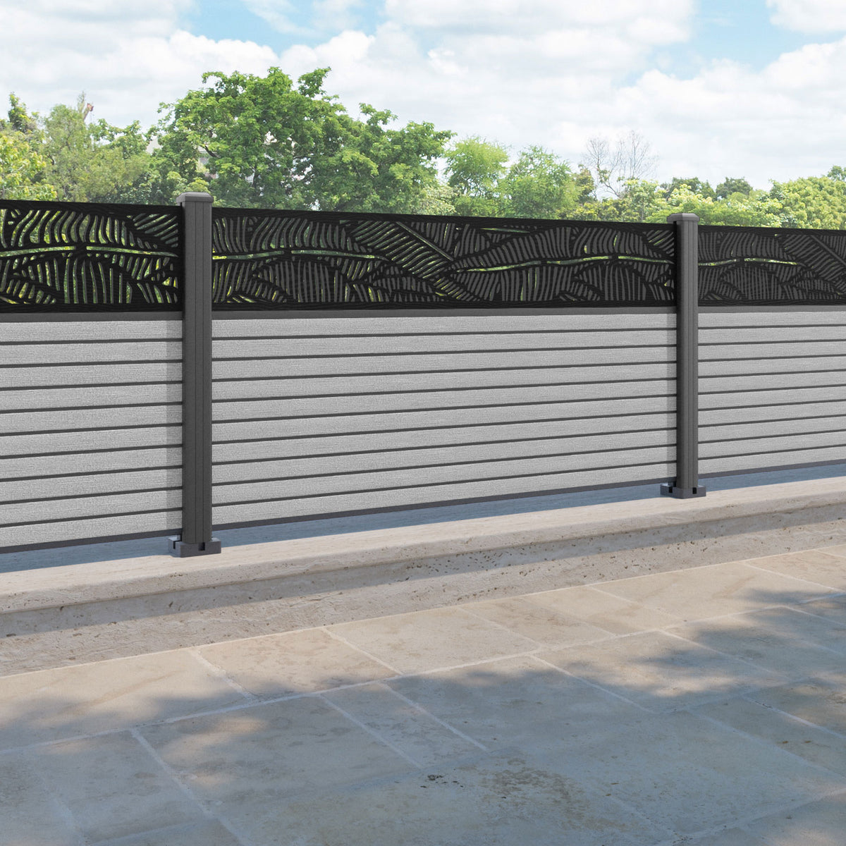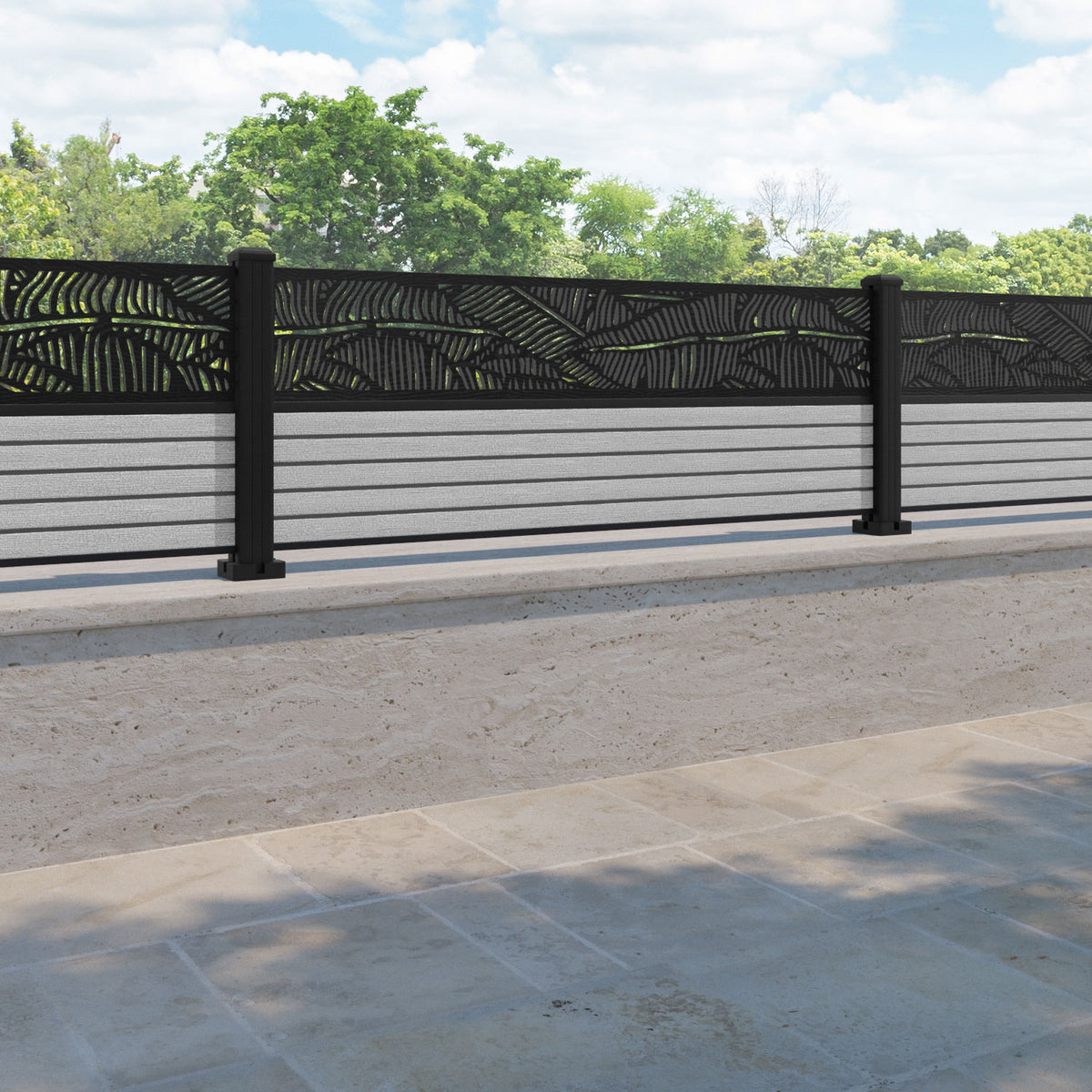 Hudson Feather Fence Panel Light Grey - with our aluminium posts