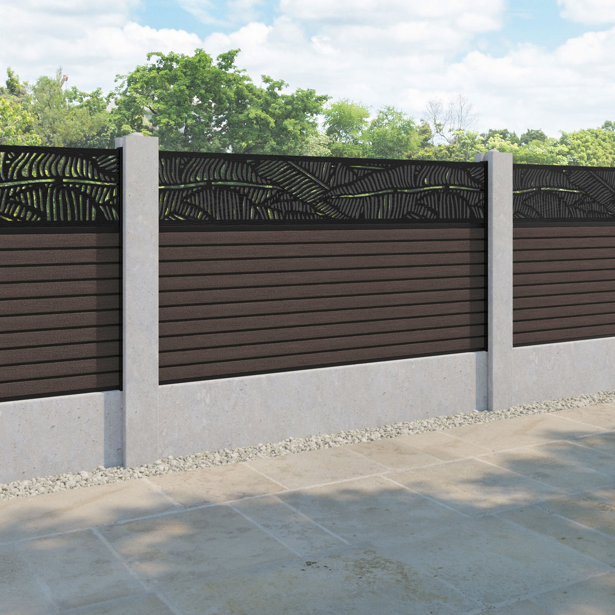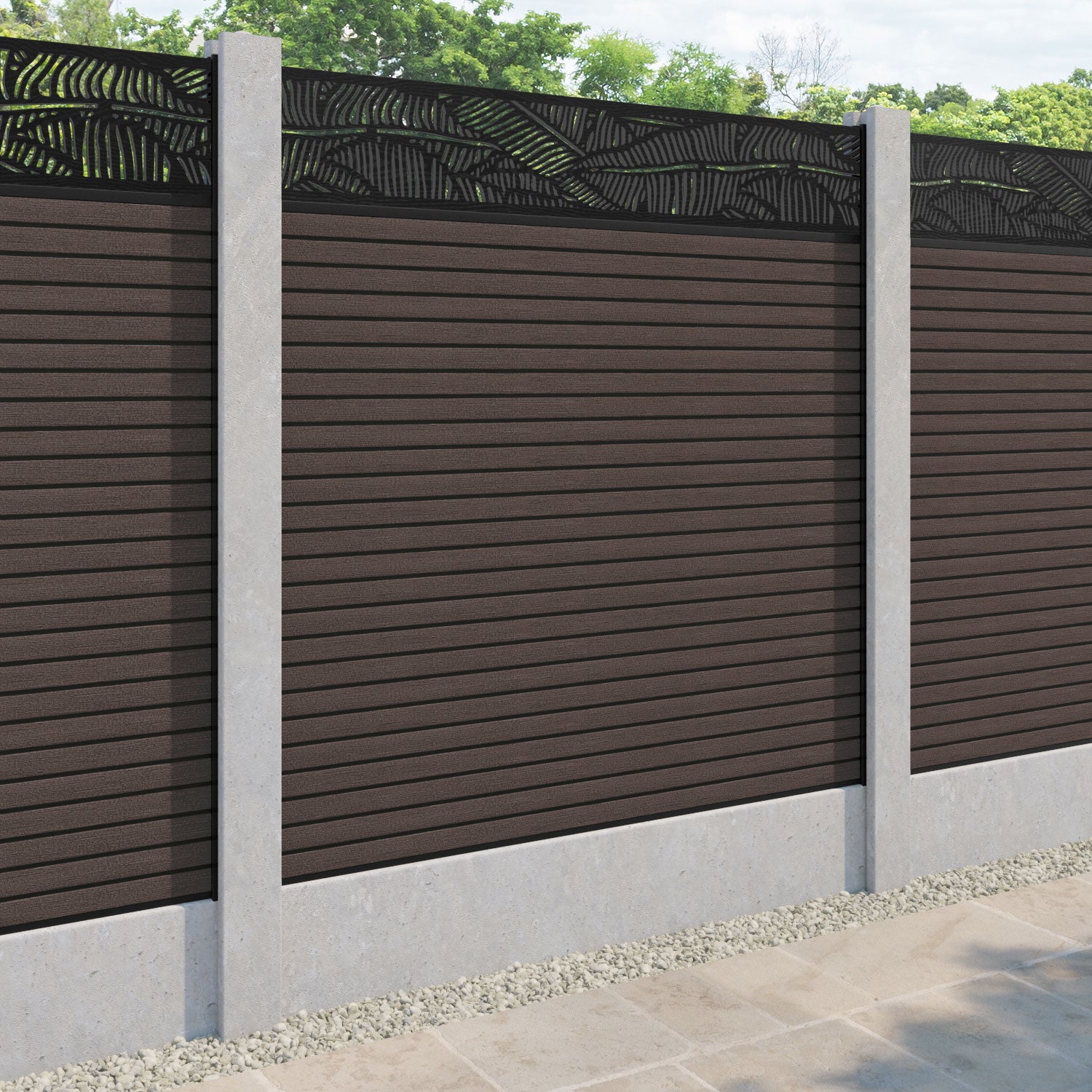 Our Feather premium composite fence screens, 18mm thick mid brown fence slats and high-grade composite channels are the perfect choice if you have existing concrete posts. Create an elegant, versatile, and eco-friendly fencing solution. Not only is this fencing responsibly sourced, it is also durable, long-lasting and requires no maintenance or painting.