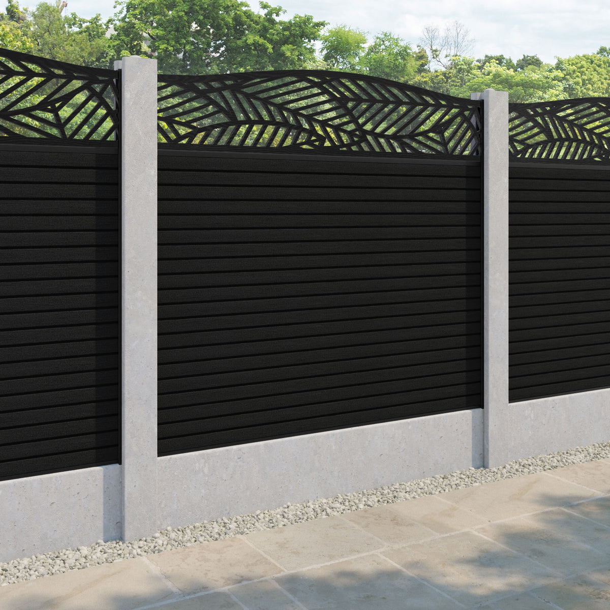 Hudson Habitat Curved Top Fence Panel Black - for existing concrete posts