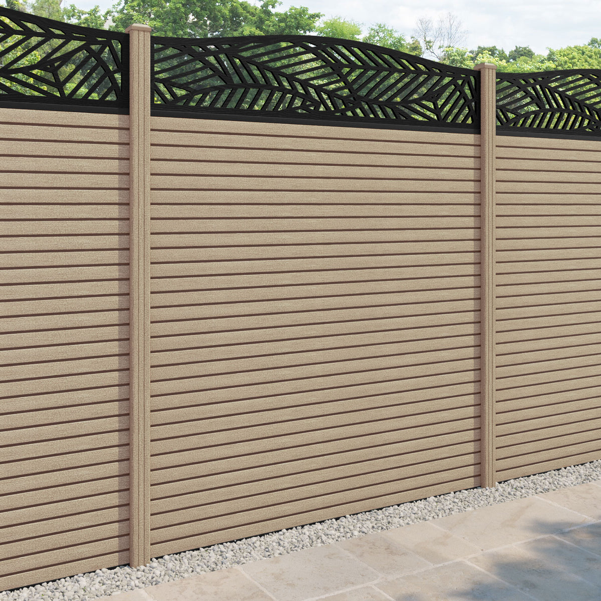 Hudson Habitat Curved Top Fence Panel Light Oak - with our composite posts