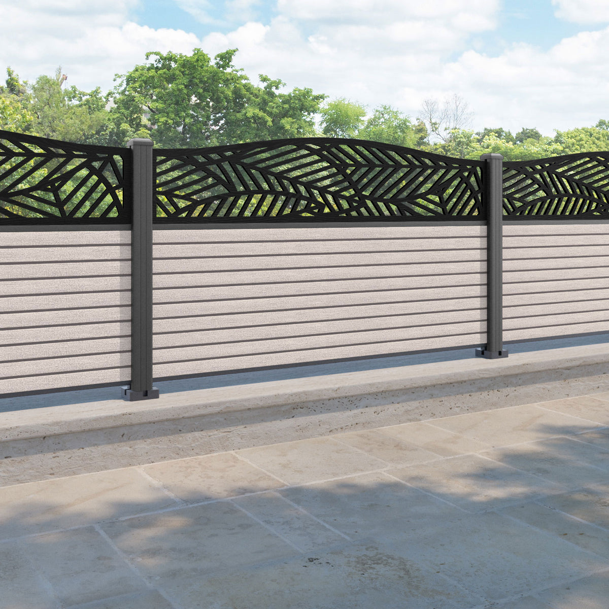 Hudson Habitat Curved Top Fence Panel Mid Stone - with our aluminium posts