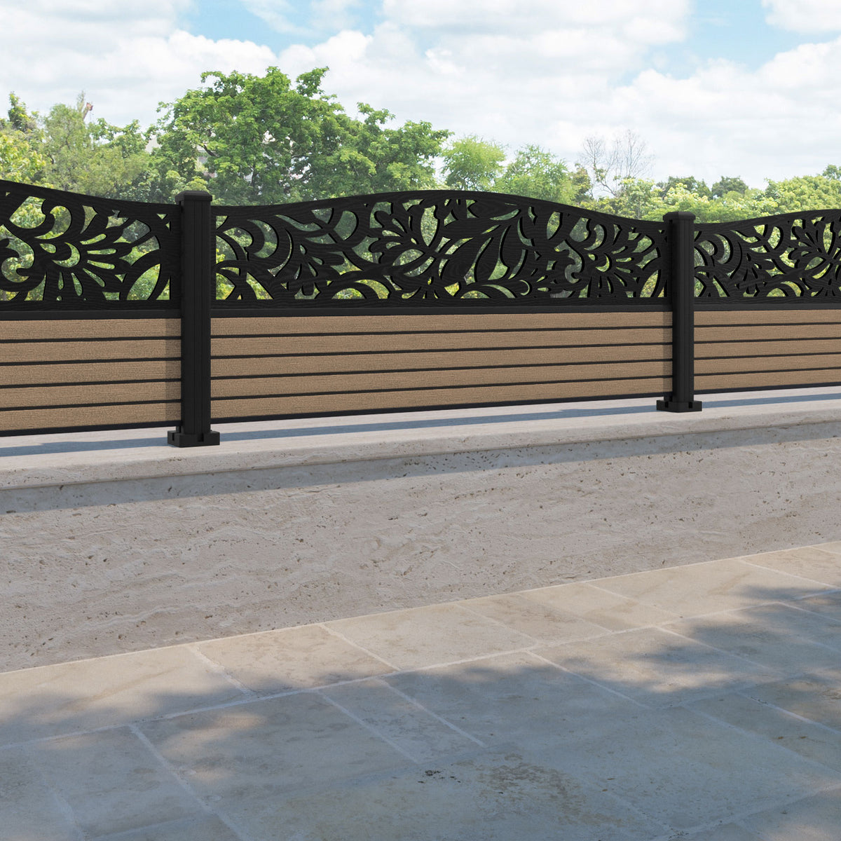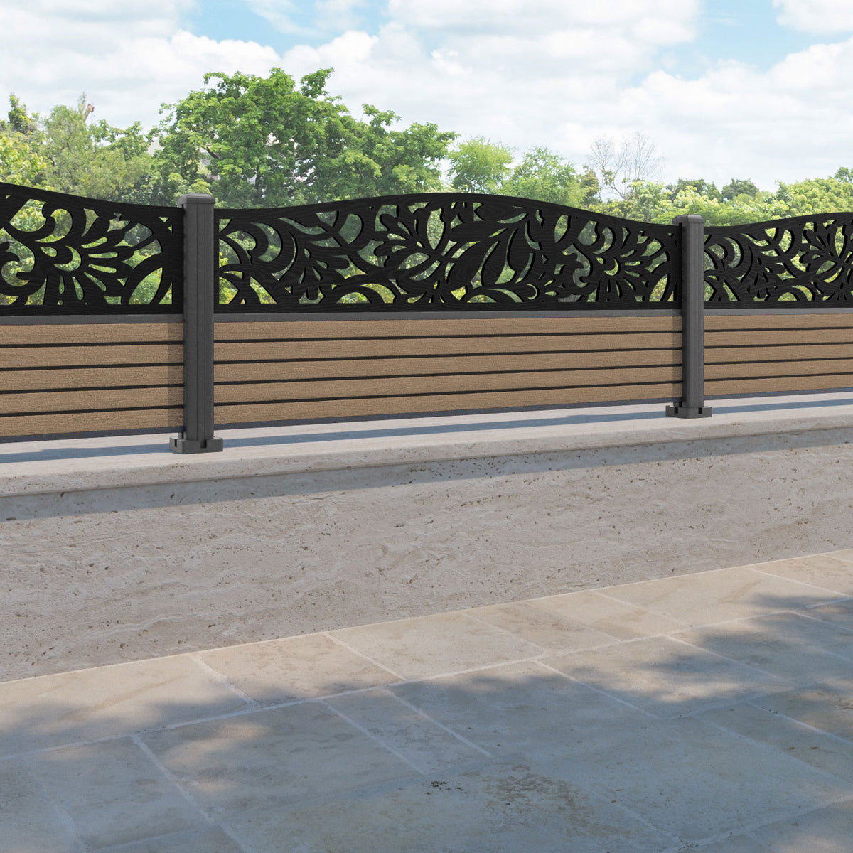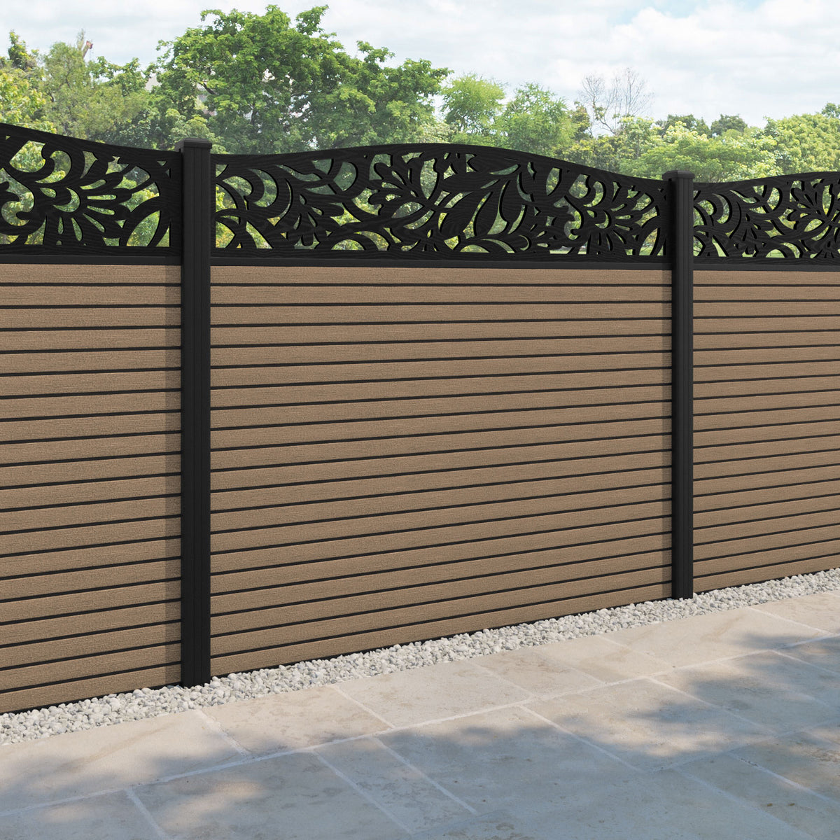 Hudson Heritage Curved Top Fence Panel Teak - with our aluminium posts