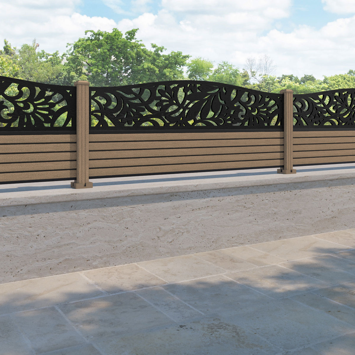 Hudson Heritage Curved Top Fence Panel Teak - with our composite posts