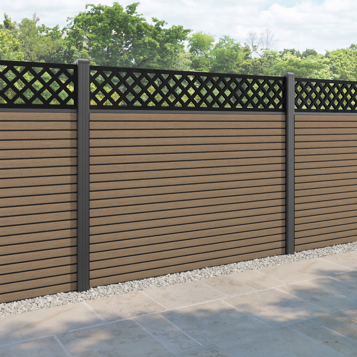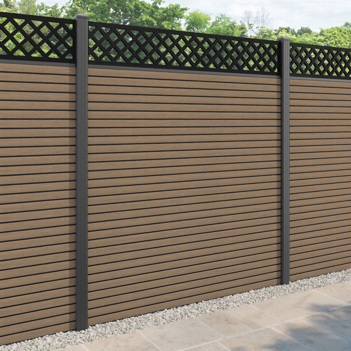Hudson Hive Fence Panel Teak - with our aluminium posts