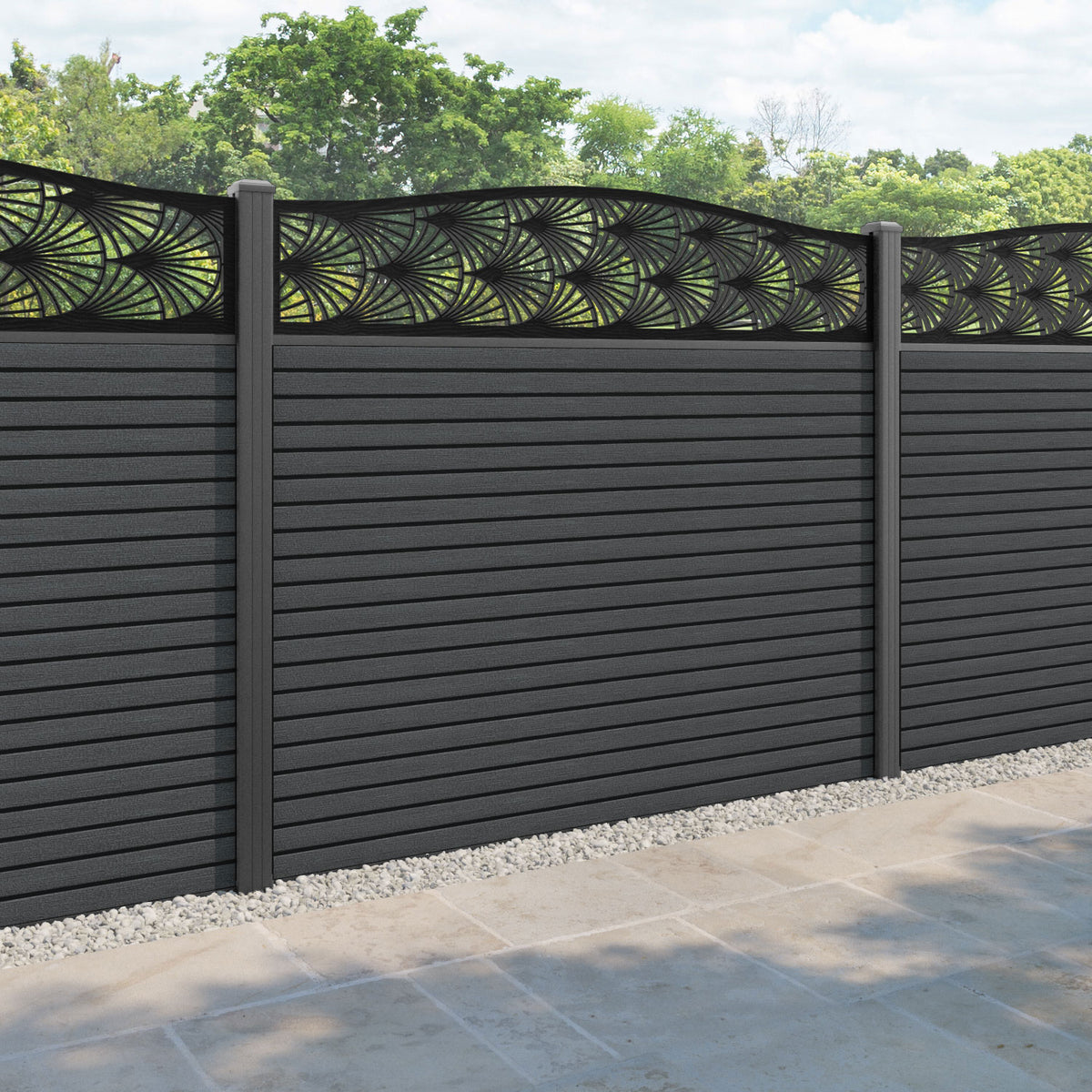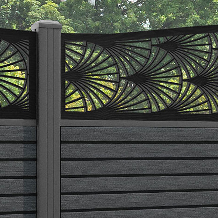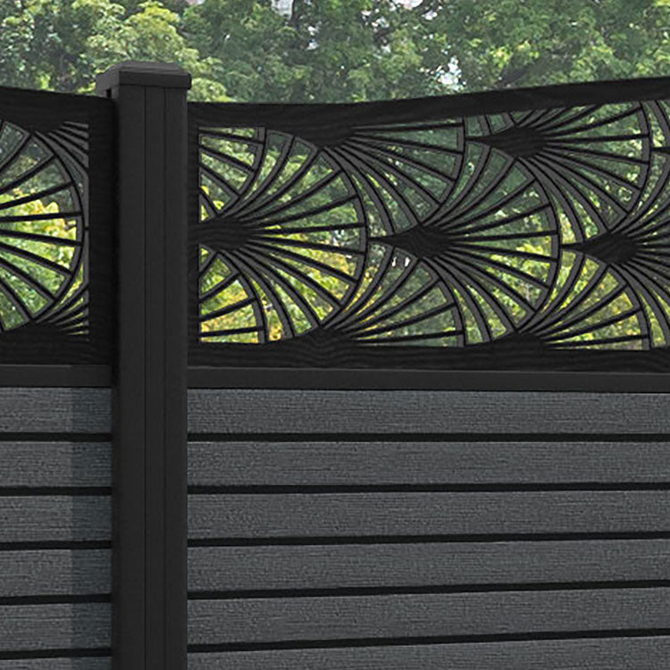 Hudson Laurel Curved Top Fence Panel Dark Grey - with our aluminium posts