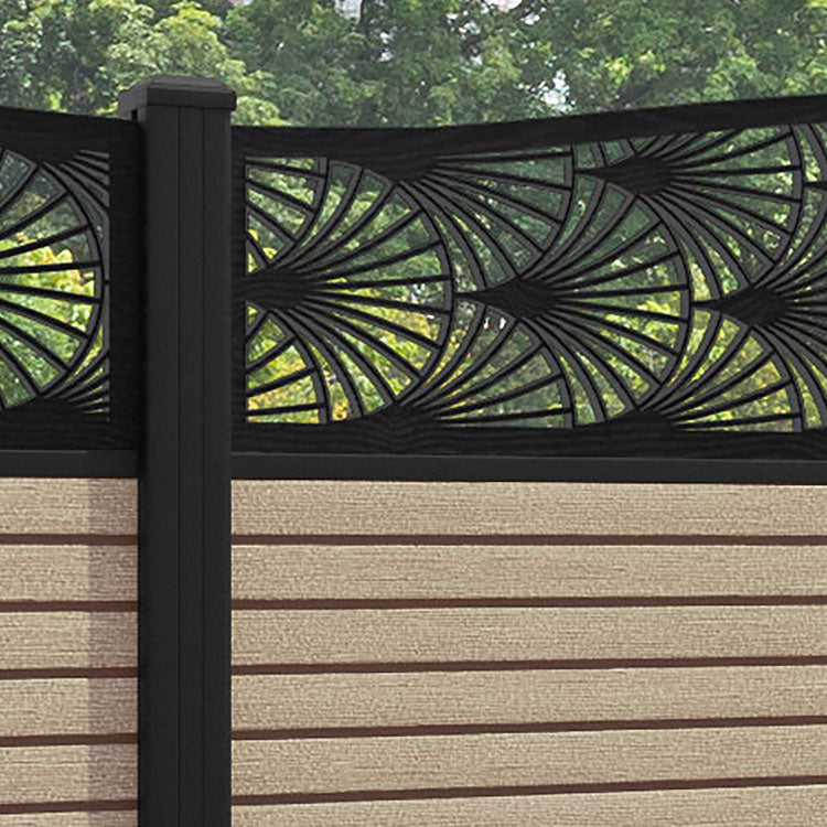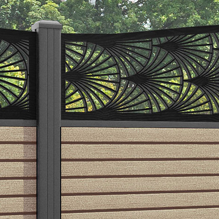 Hudson Laurel Curved Top Fence Panel Light Oak - with our aluminium posts