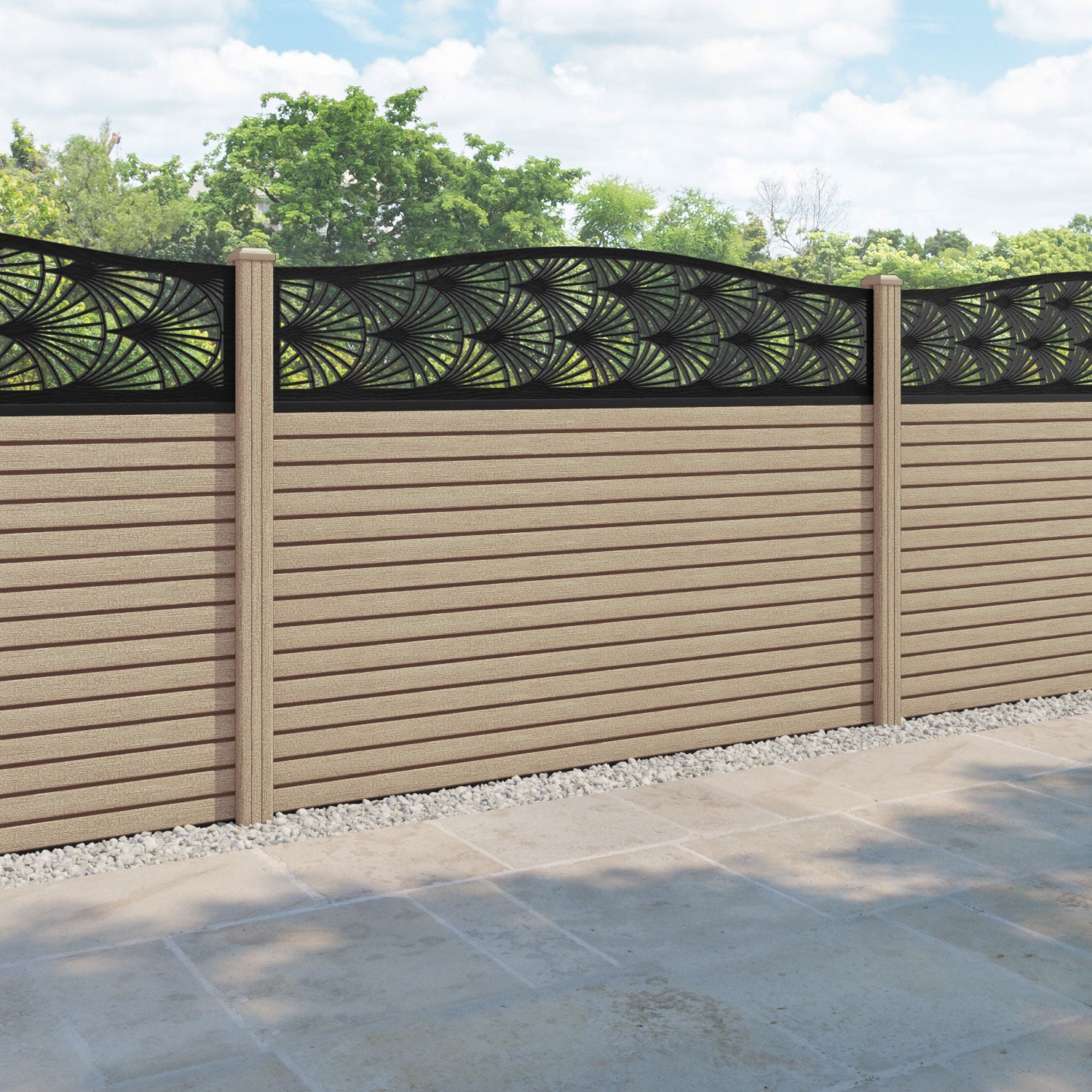 Hudson Laurel Curved Top Fence Panel Light Oak - with our composite posts