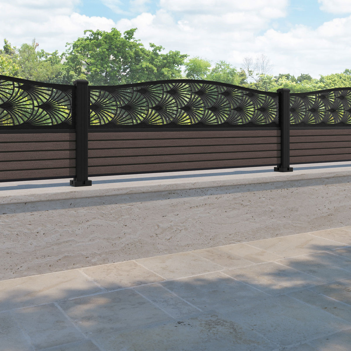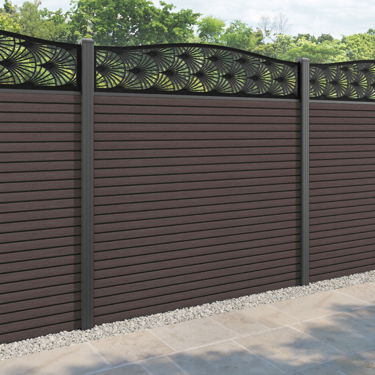 Hudson Laurel Curved Top Fence Panel Mid Brown - with our aluminium posts