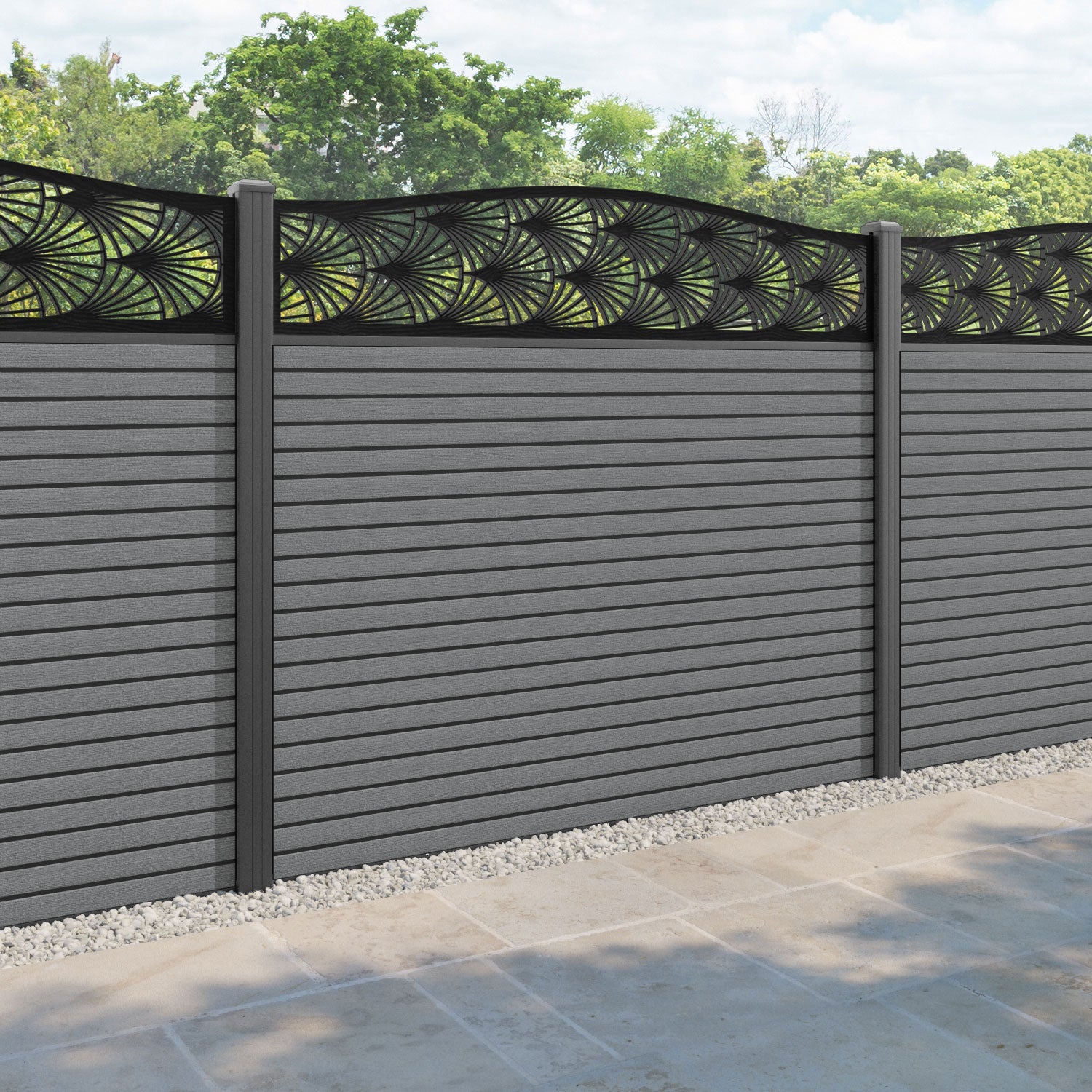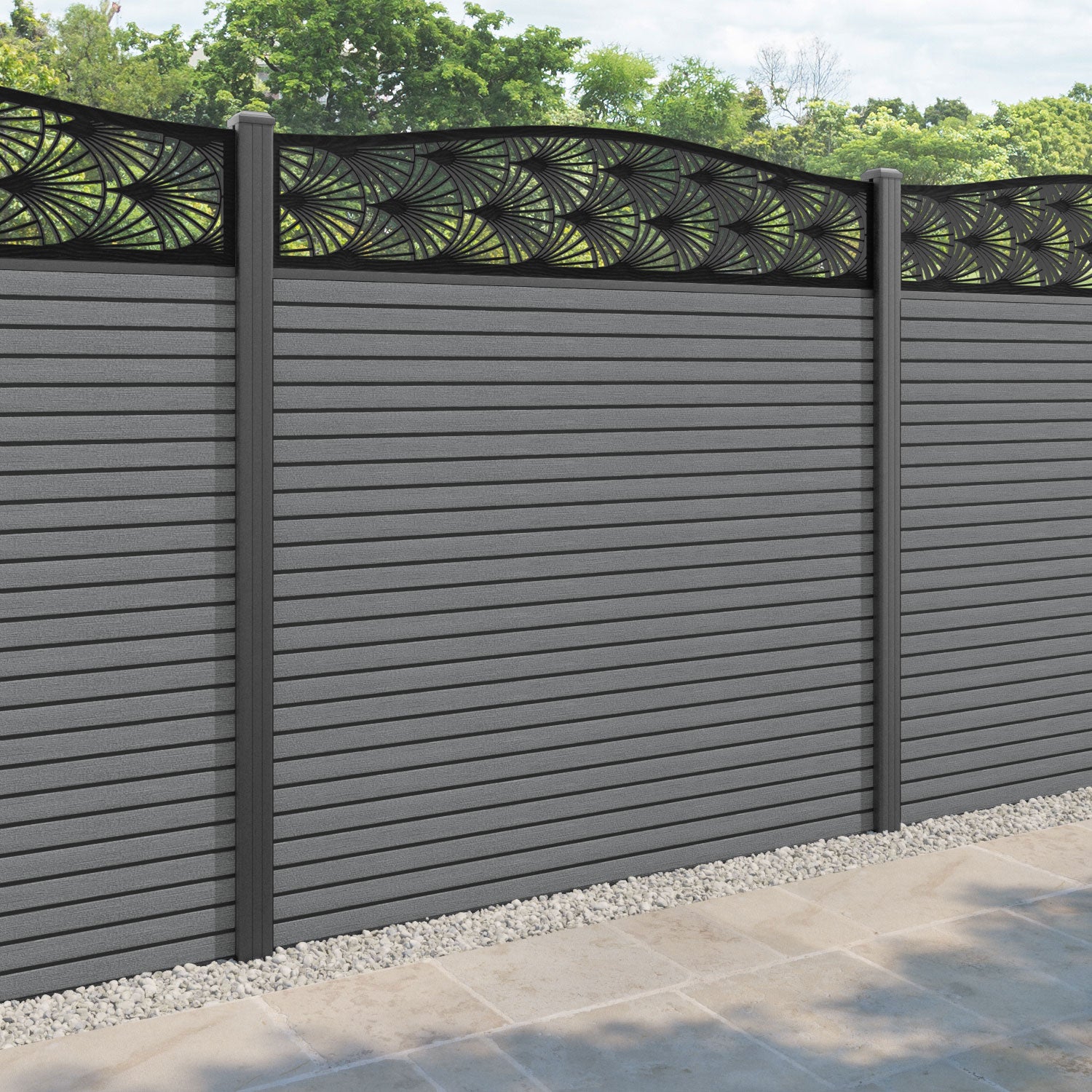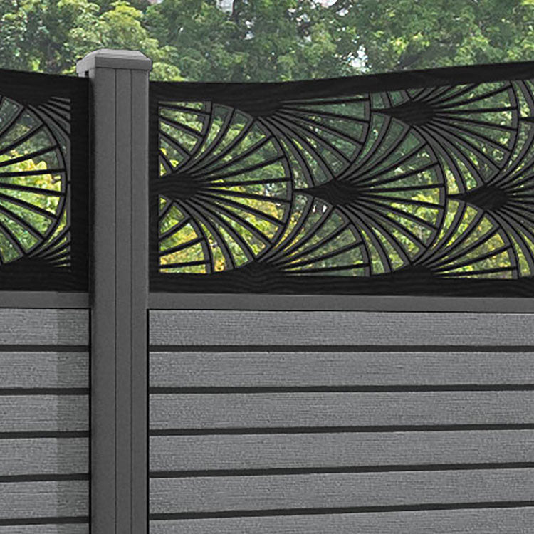 Hudson Laurel Curved Top Fence Panel Mid Grey - with our aluminium posts