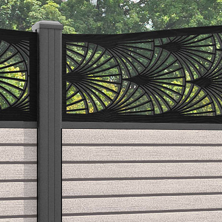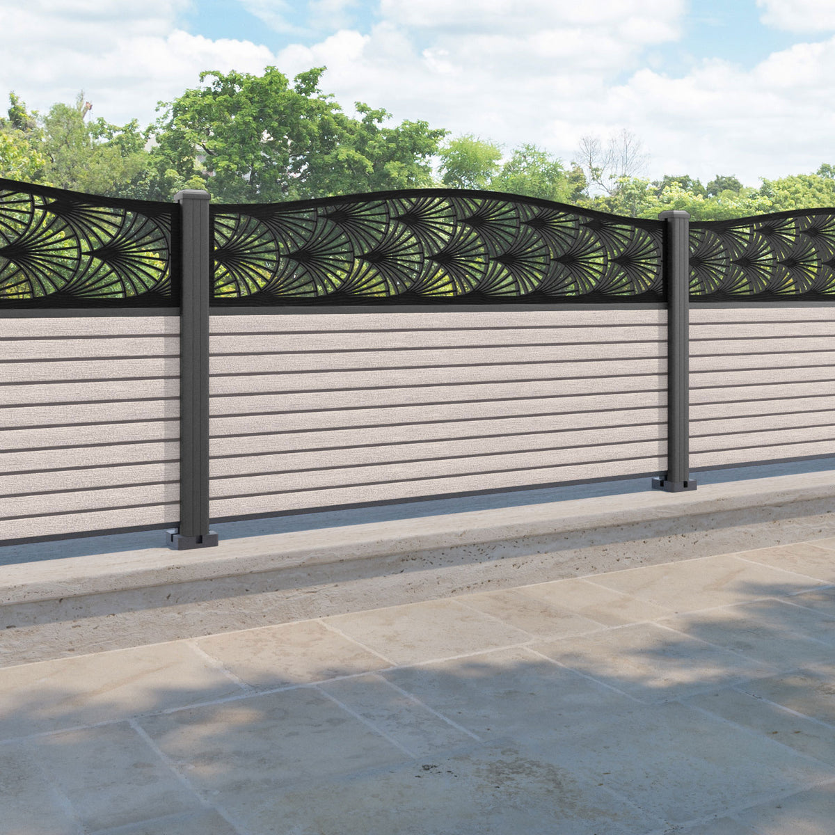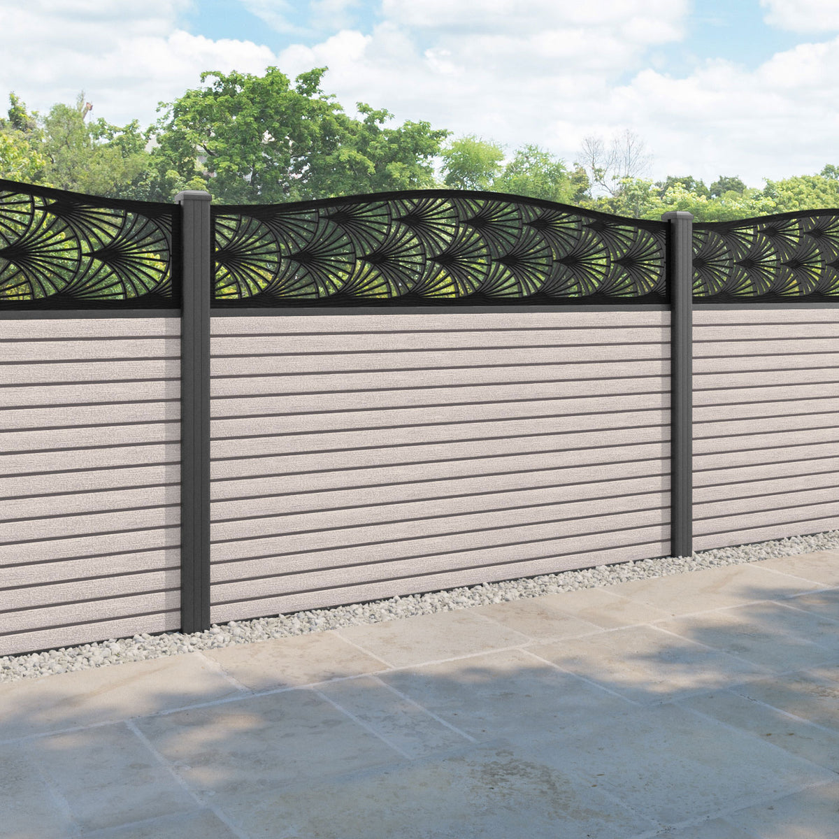 Hudson Laurel Curved Top Fence Panel Mid Stone - with our aluminium posts
