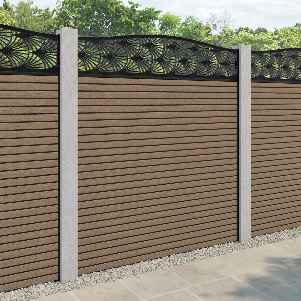 Hudson Laurel Curved Top Fence Panel Teak - for existing concrete posts