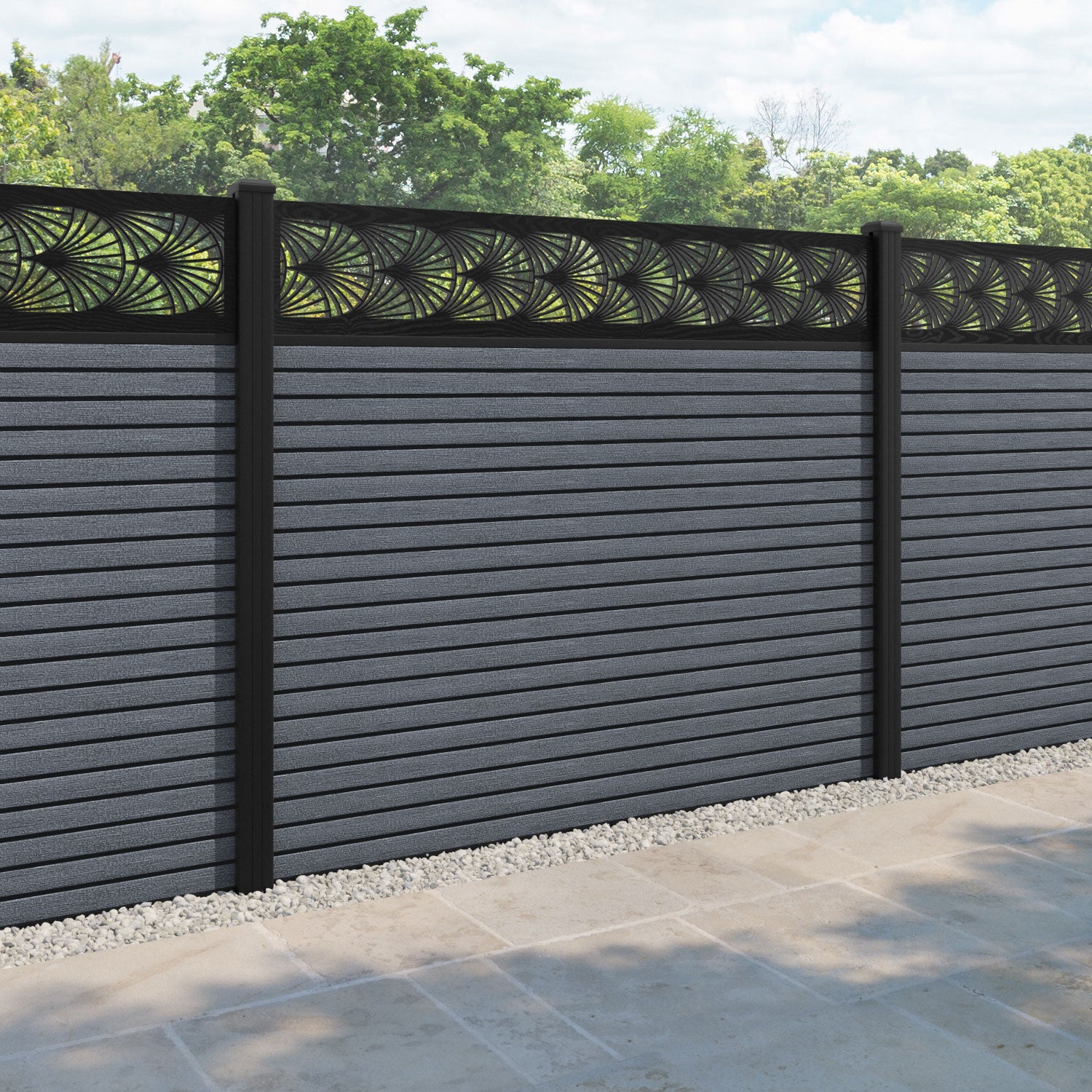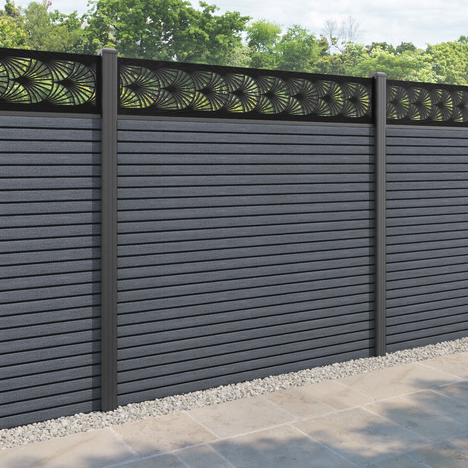 Hudson Laurel Fence Panel Anthracite - with our aluminium posts