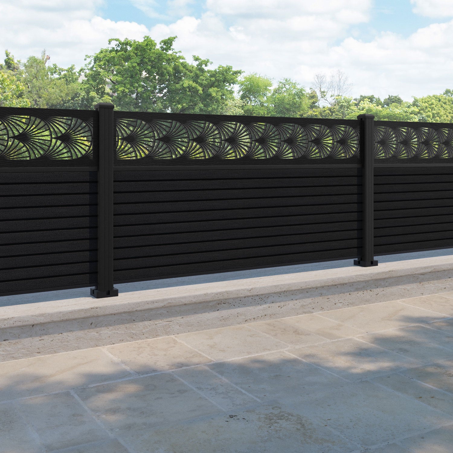 Hudson Laurel Fence Panel Black - with our aluminium posts