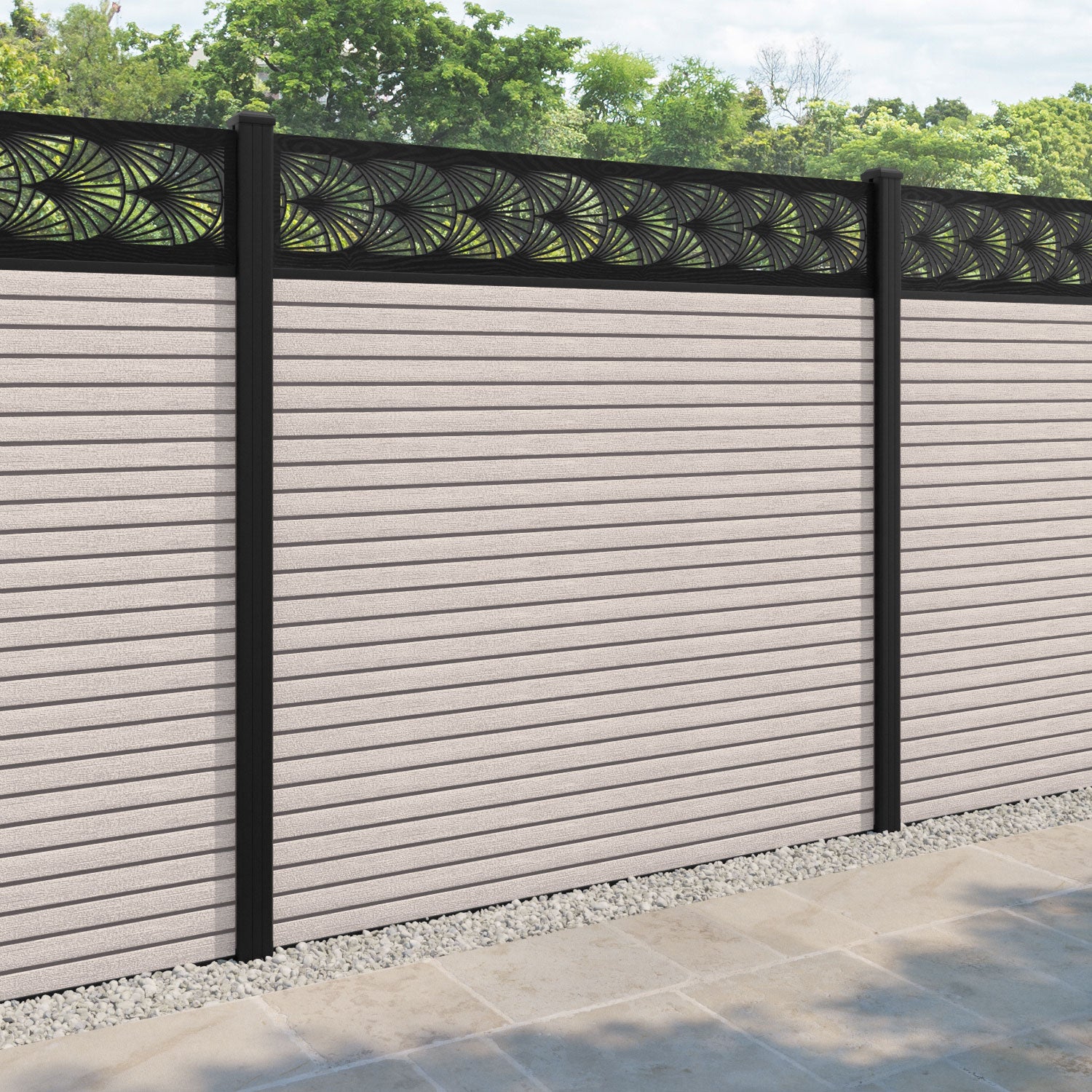 Hudson Laurel Fence Panel Mid Stone - with our aluminium posts