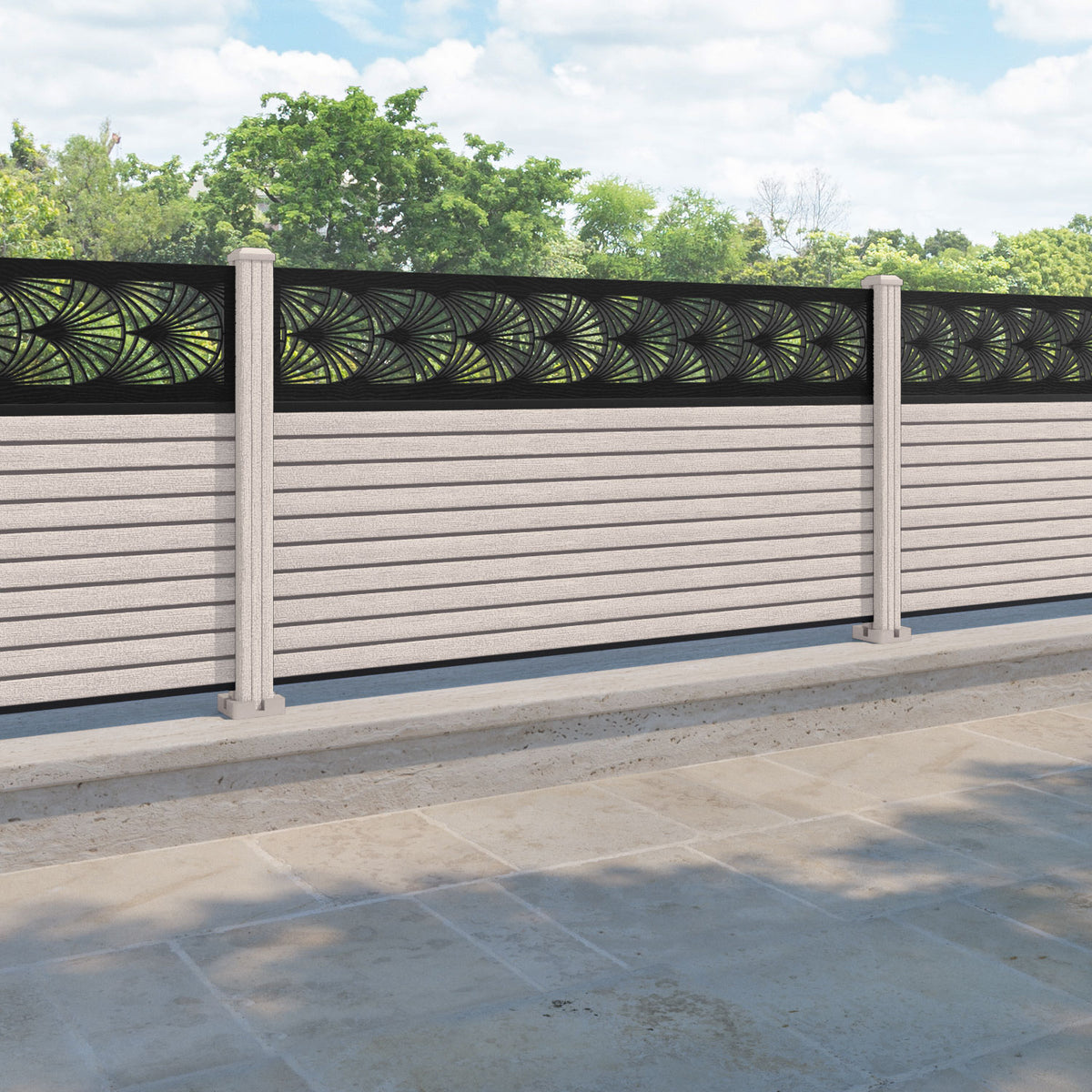 Hudson Laurel Fence Panel Mid Stone - with our composite posts