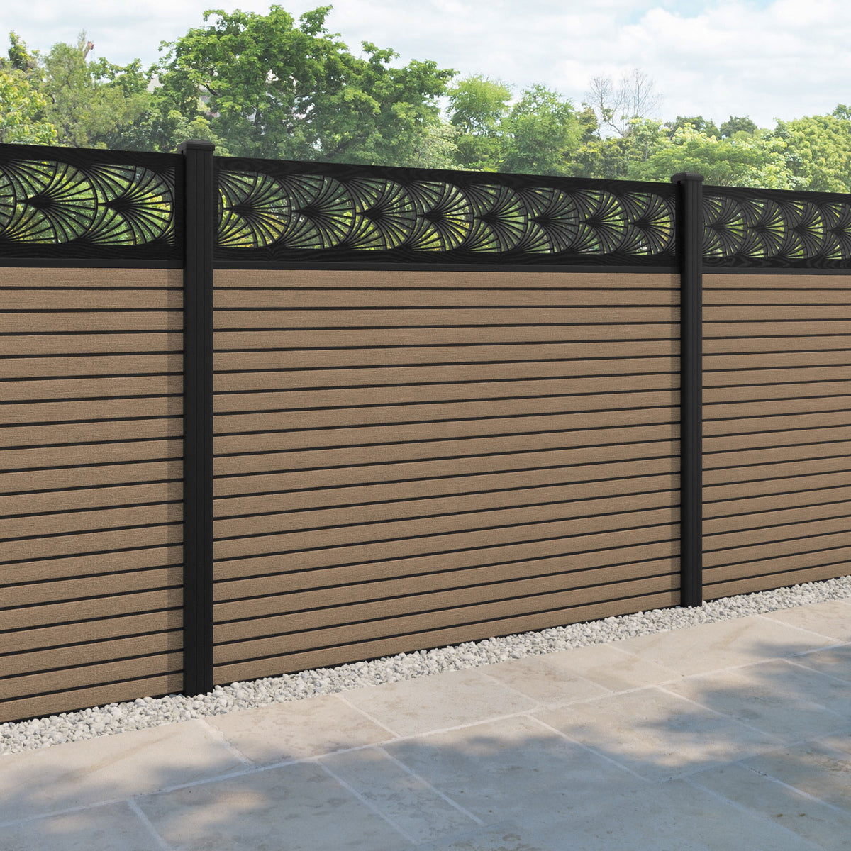 Hudson Laurel Fence Panel Teak - with our aluminium posts