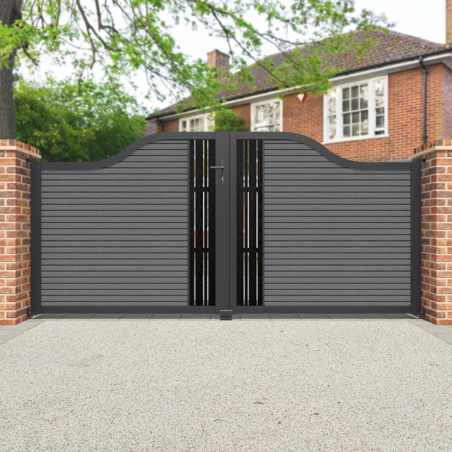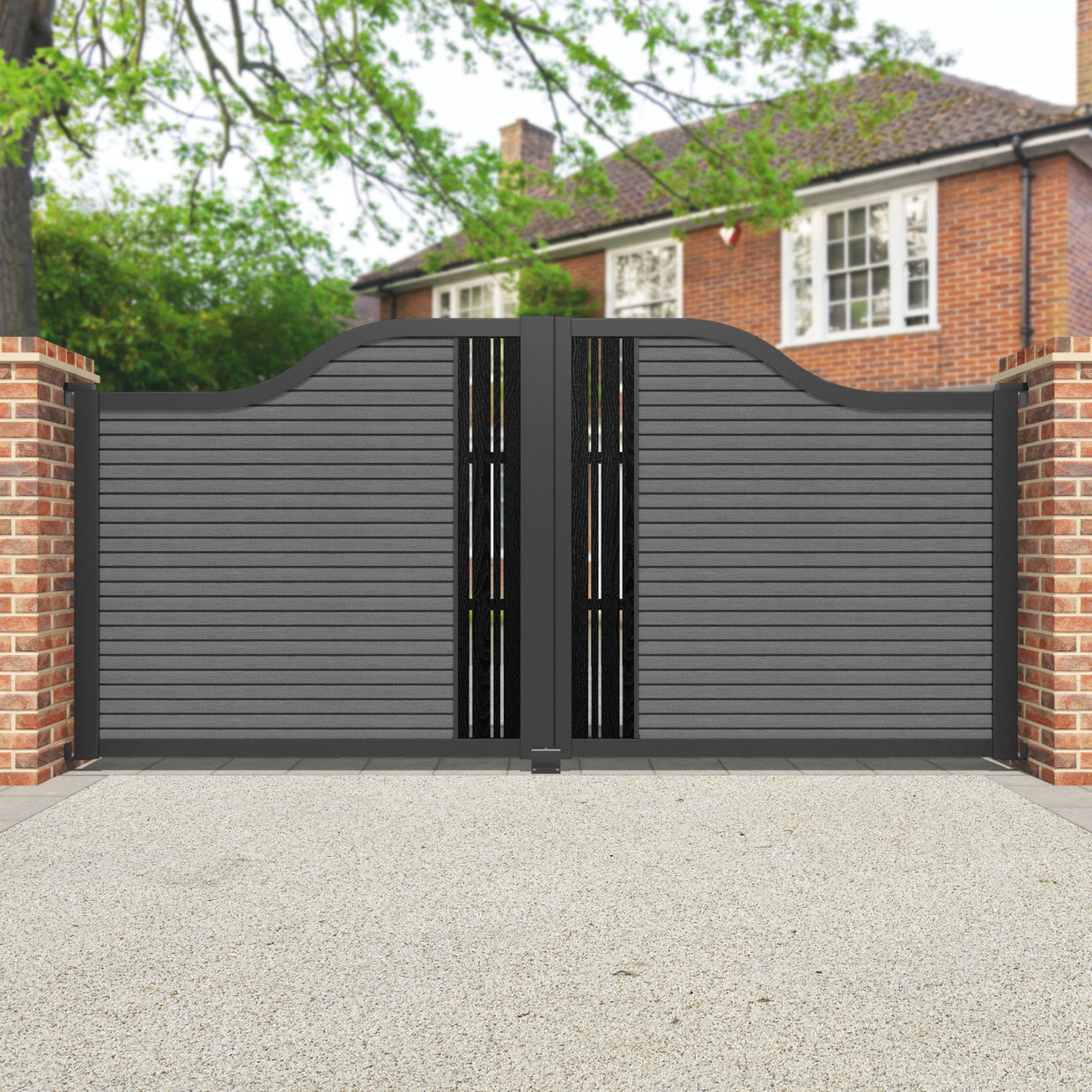 Hudson Linea Curved Top Driveway Gate Mid Grey - Middle Screen