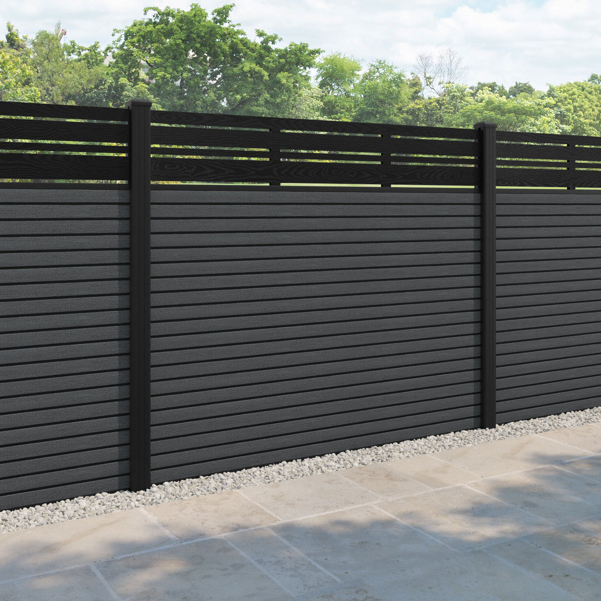 Hudson Linea Fence Panel Dark Grey - with our aluminium posts