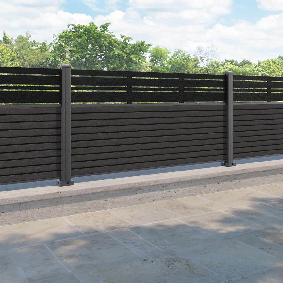 Hudson Linea Fence Panel Dark Oak - with our aluminium posts