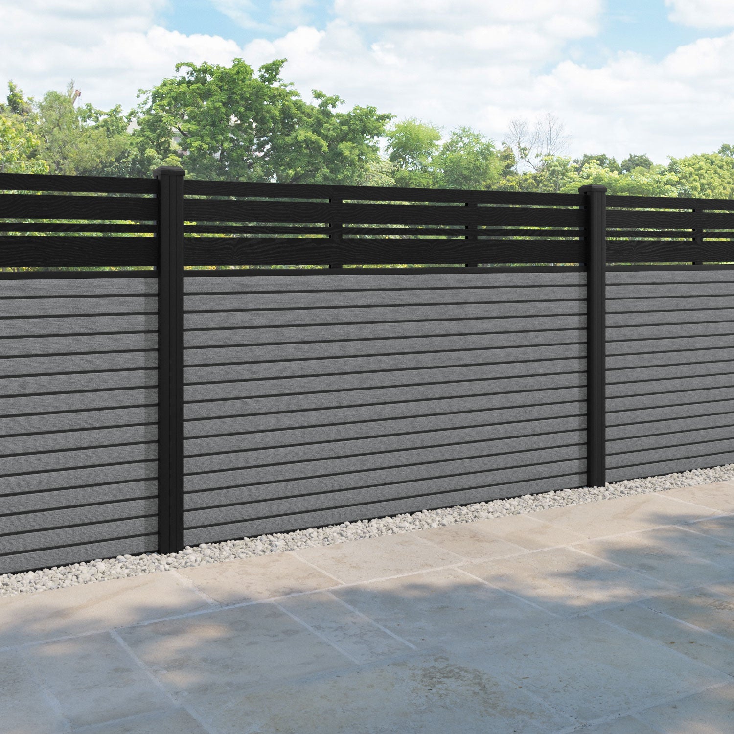Hudson Linea Fence Panel Mid Grey - with our aluminium posts