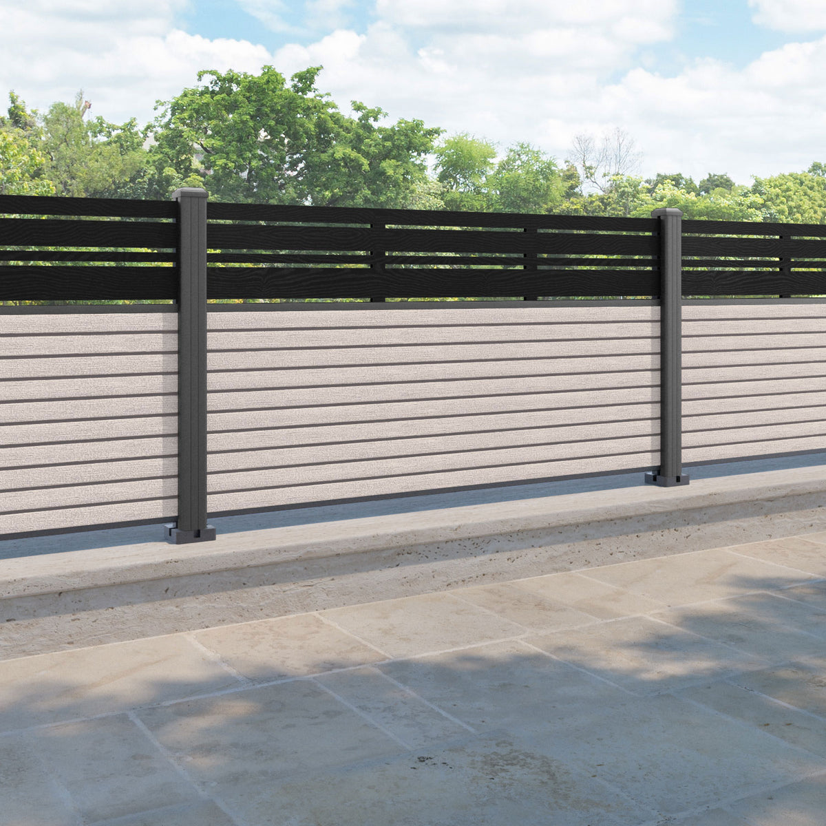 Hudson Linea Fence Panel Mid Stone - with our aluminium posts