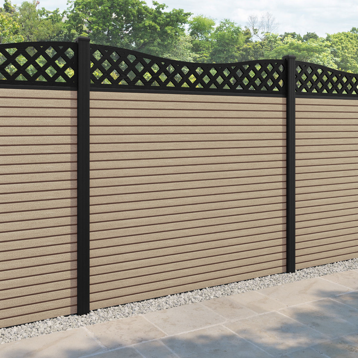 Hudson Low Wave Fence Panel Light Oak - with our aluminium posts