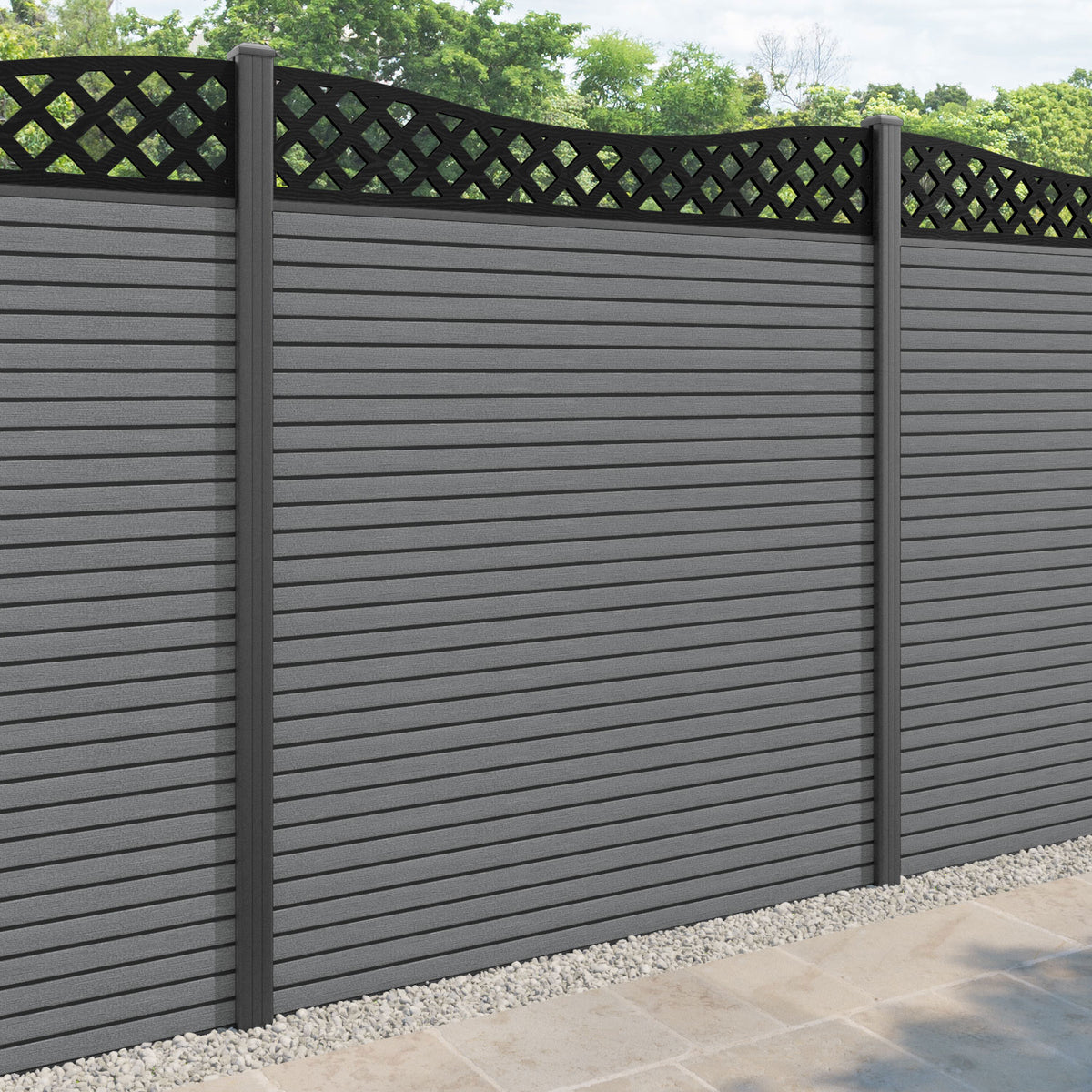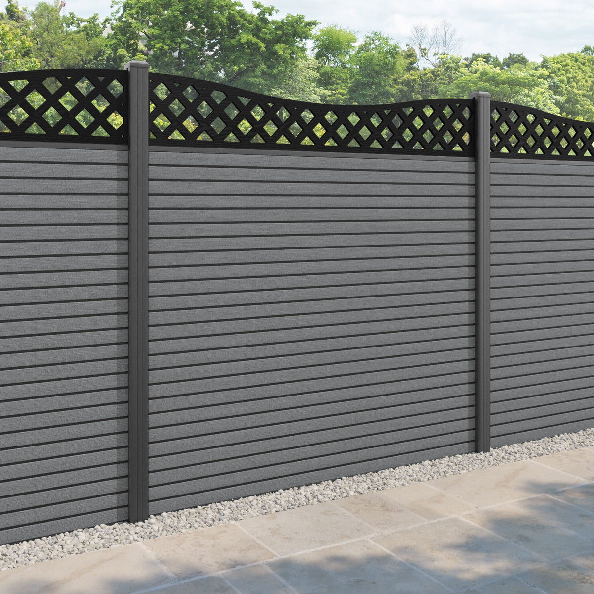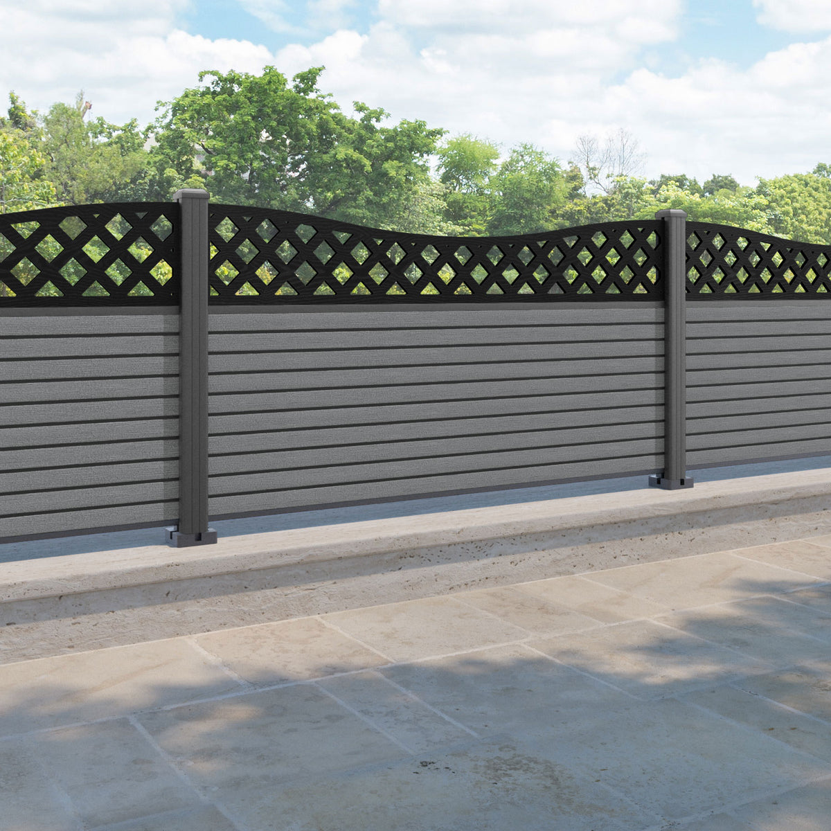 Hudson Low Wave Fence Panel Mid Grey - with our aluminium posts
