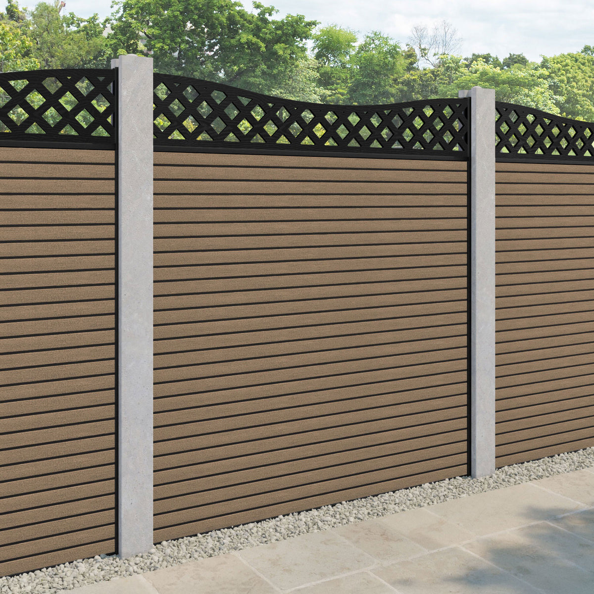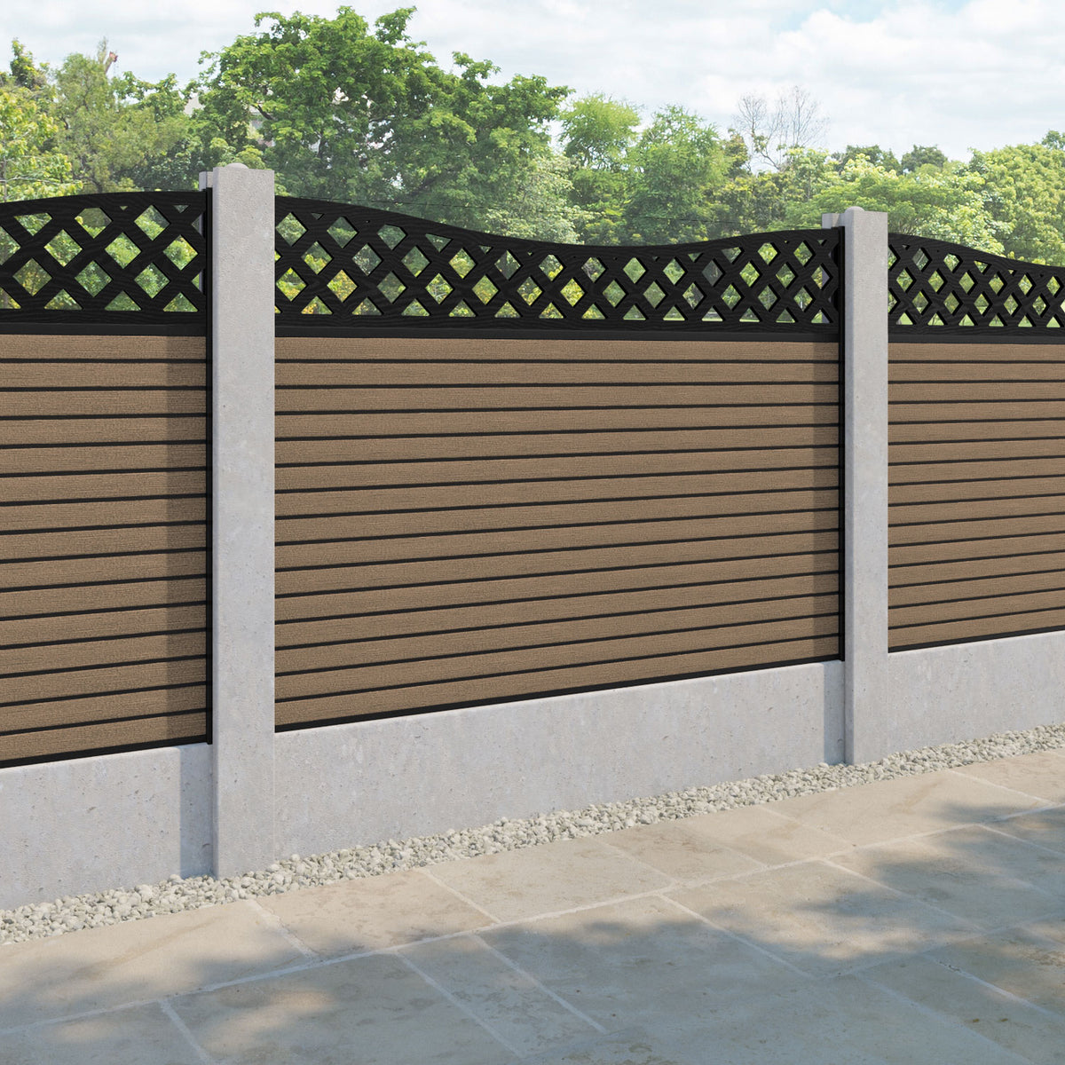 A classic diagonal decorative trellis panel adding a stylish touch to your fence panel. The Wave low screen can be used with the Wave high to create a beautiful traditional look.