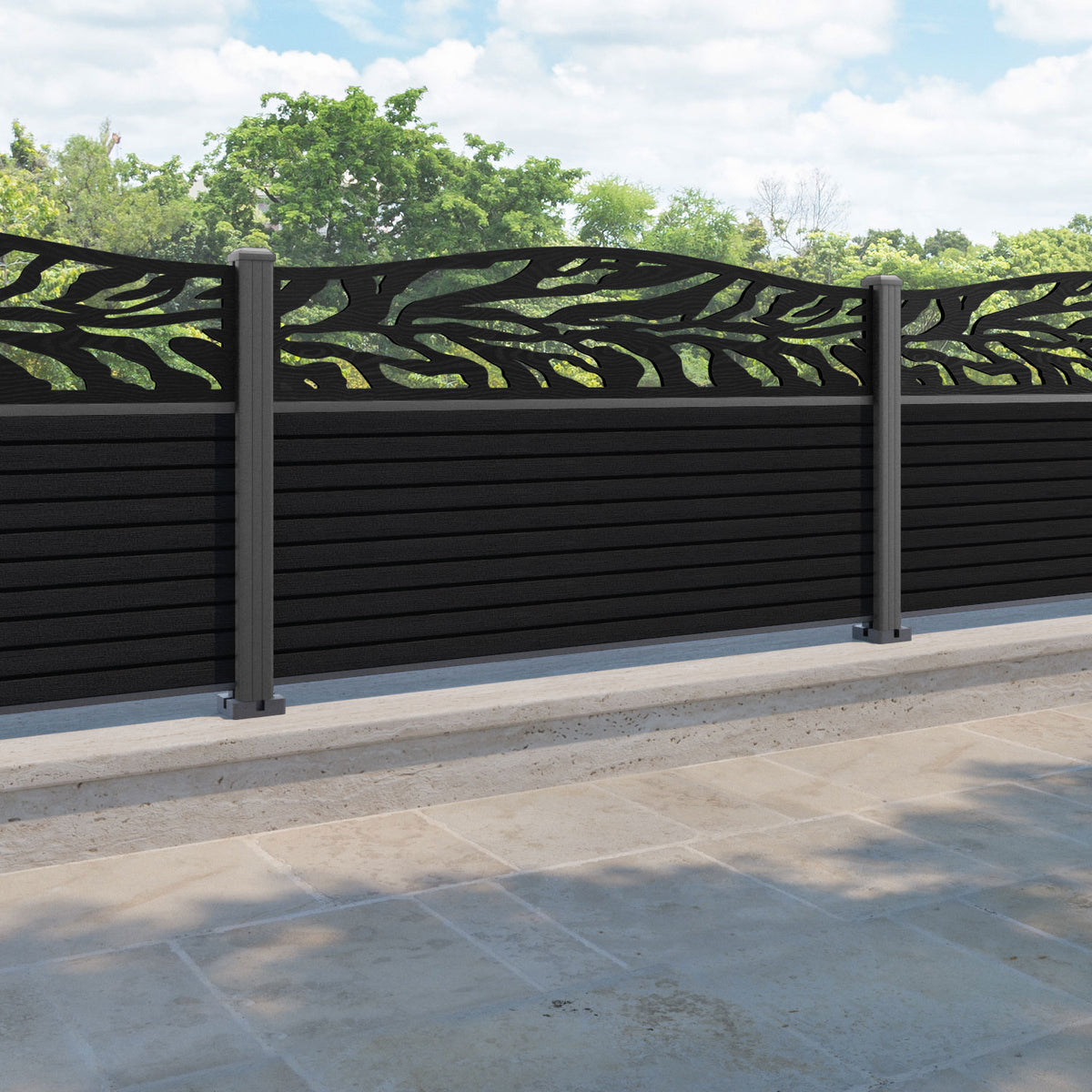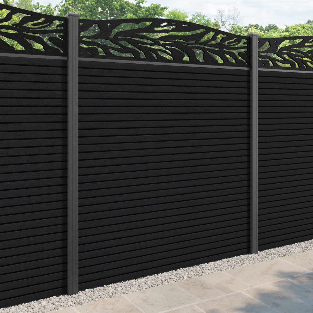 Hudson Malawi Curved Top Fence Panel Black - with our aluminium posts