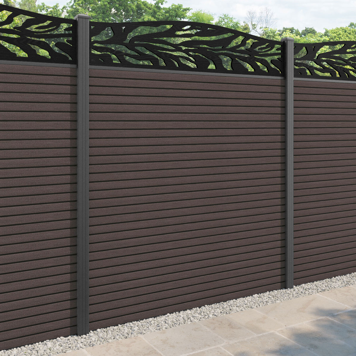 Hudson Malawi Curved Top Fence Panel Mid Brown - with our aluminium posts