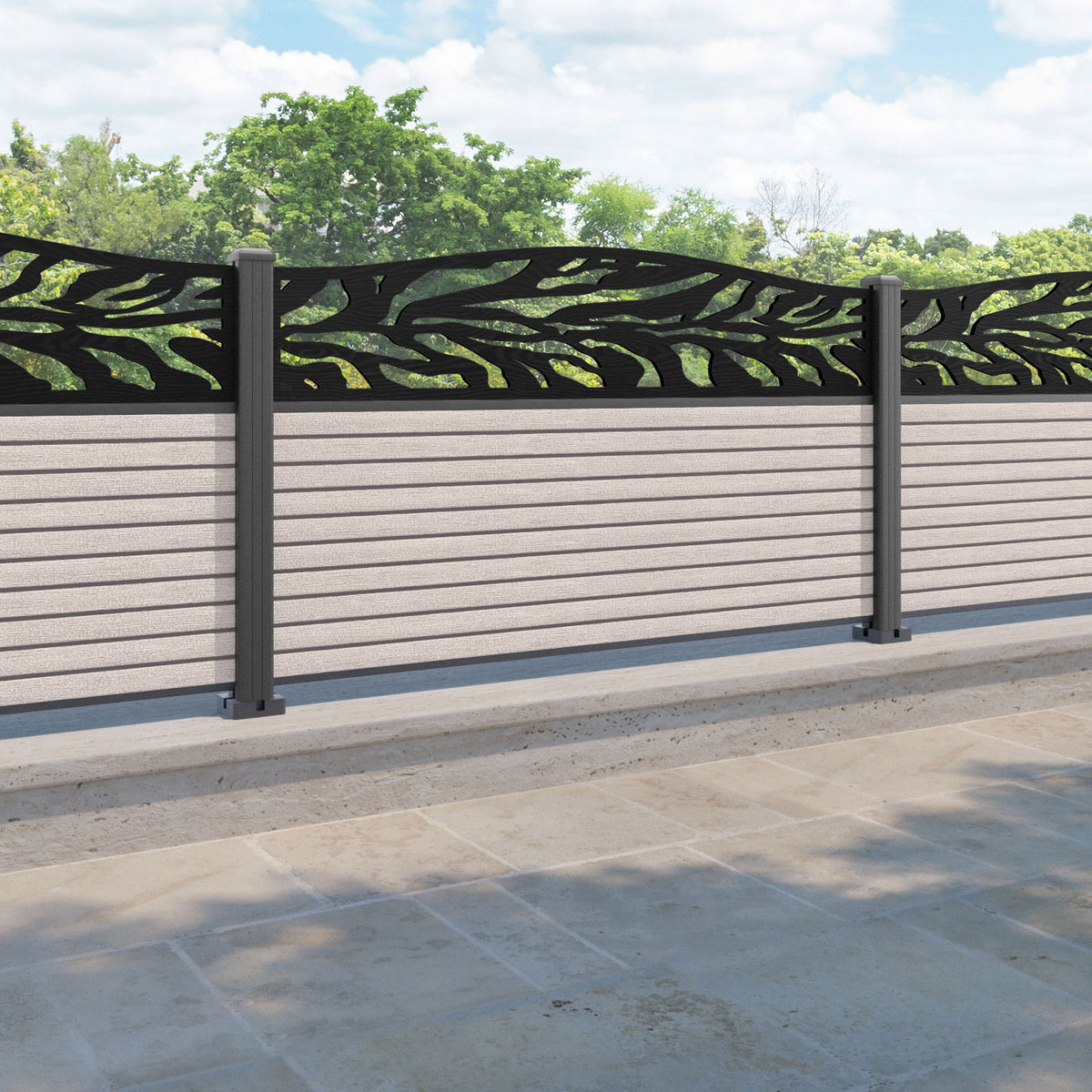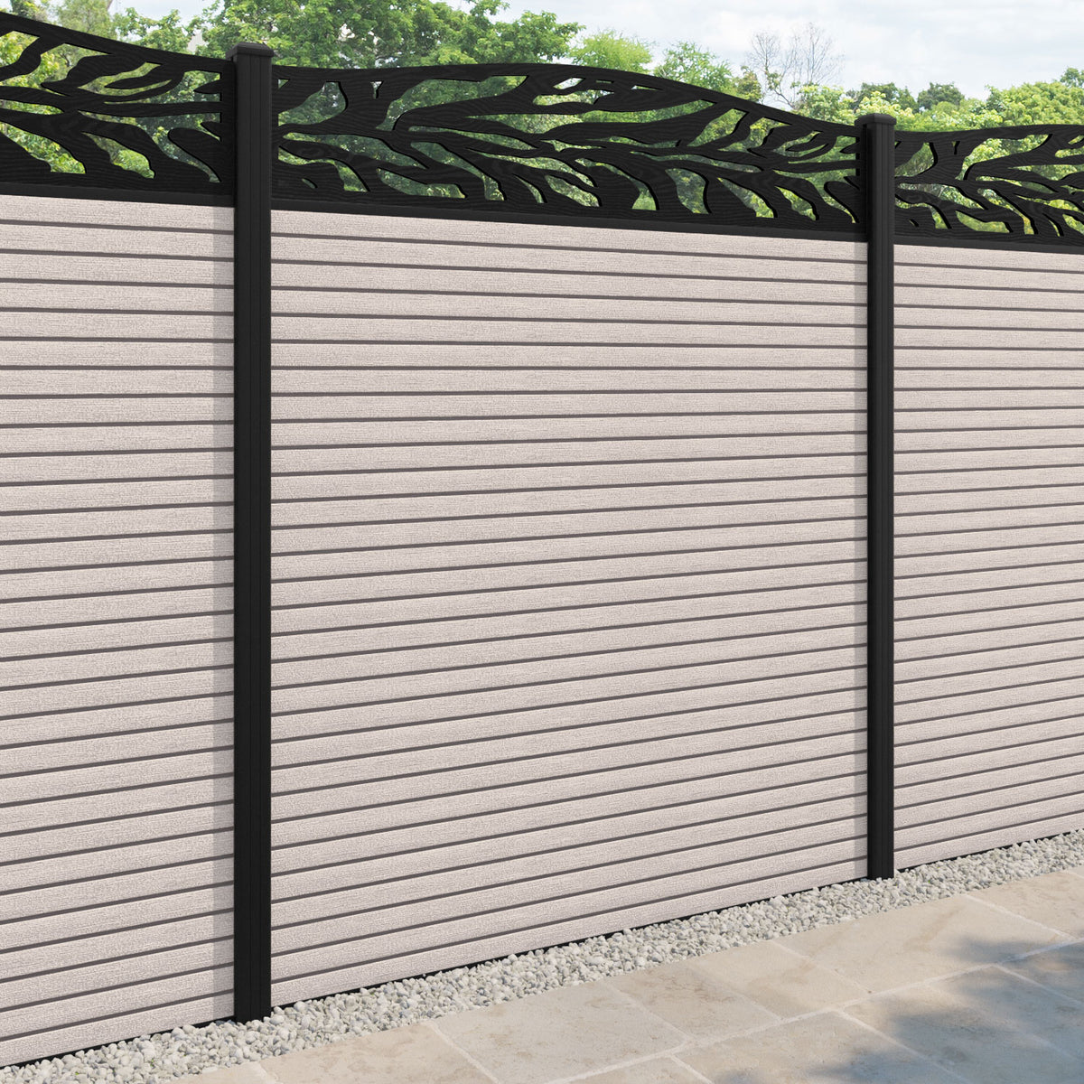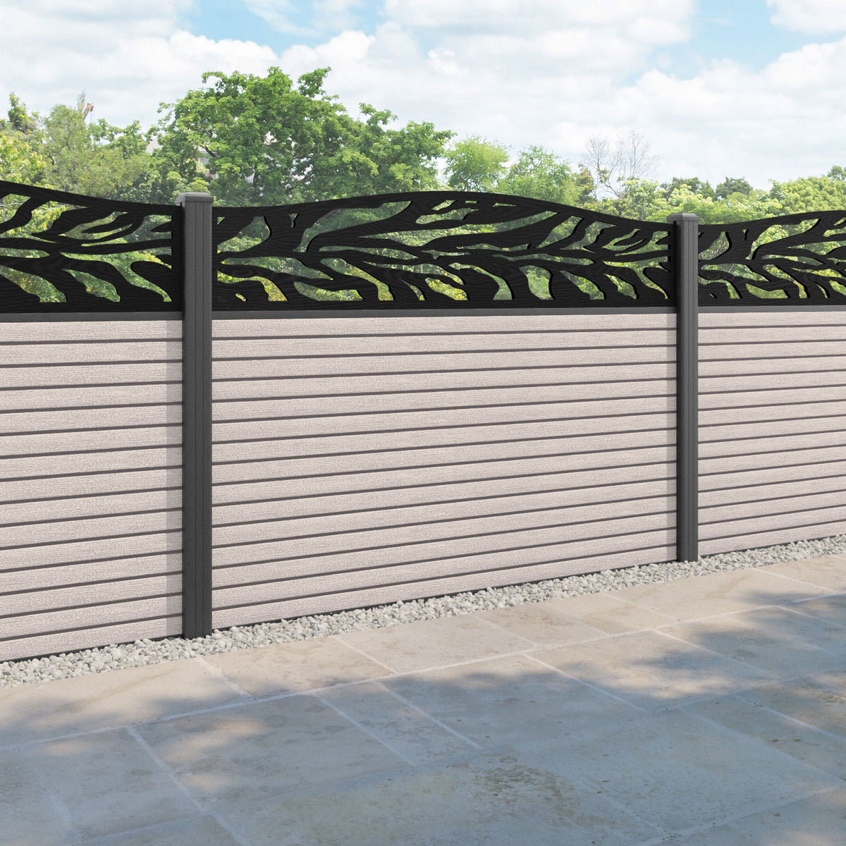 Hudson Malawi Curved Top Fence Panel Mid Stone - with our aluminium posts