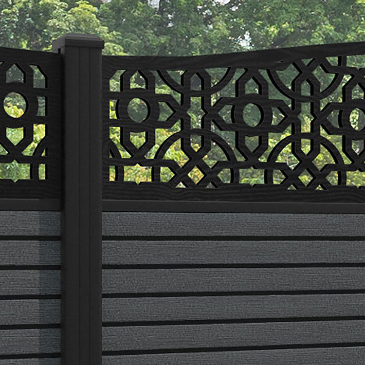 Hudson Nabila Curved Top Fence Panel Dark Grey - with our aluminium posts