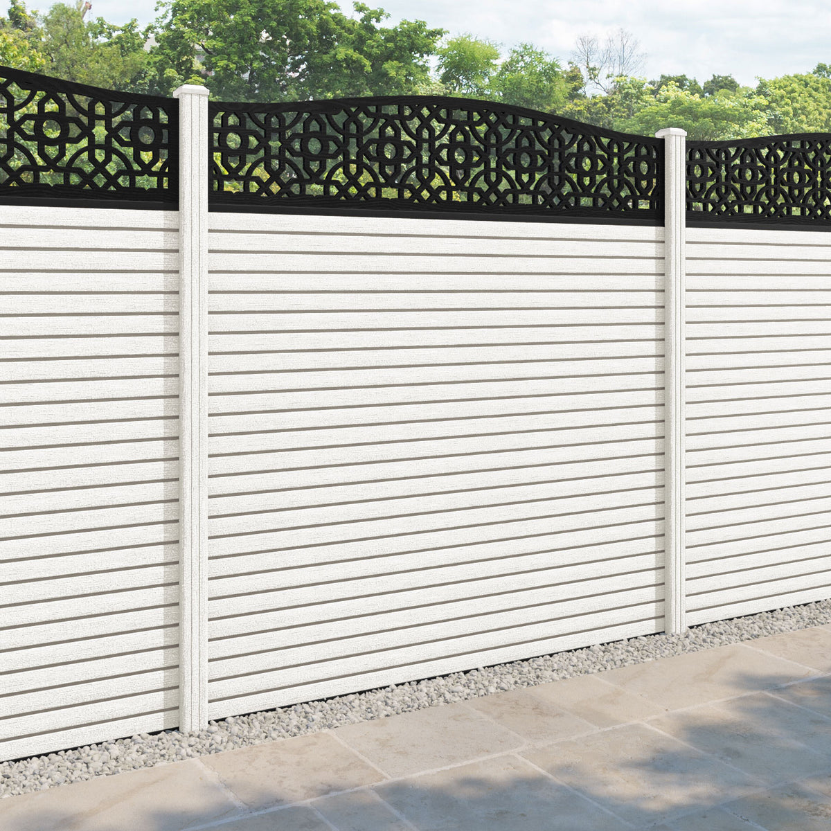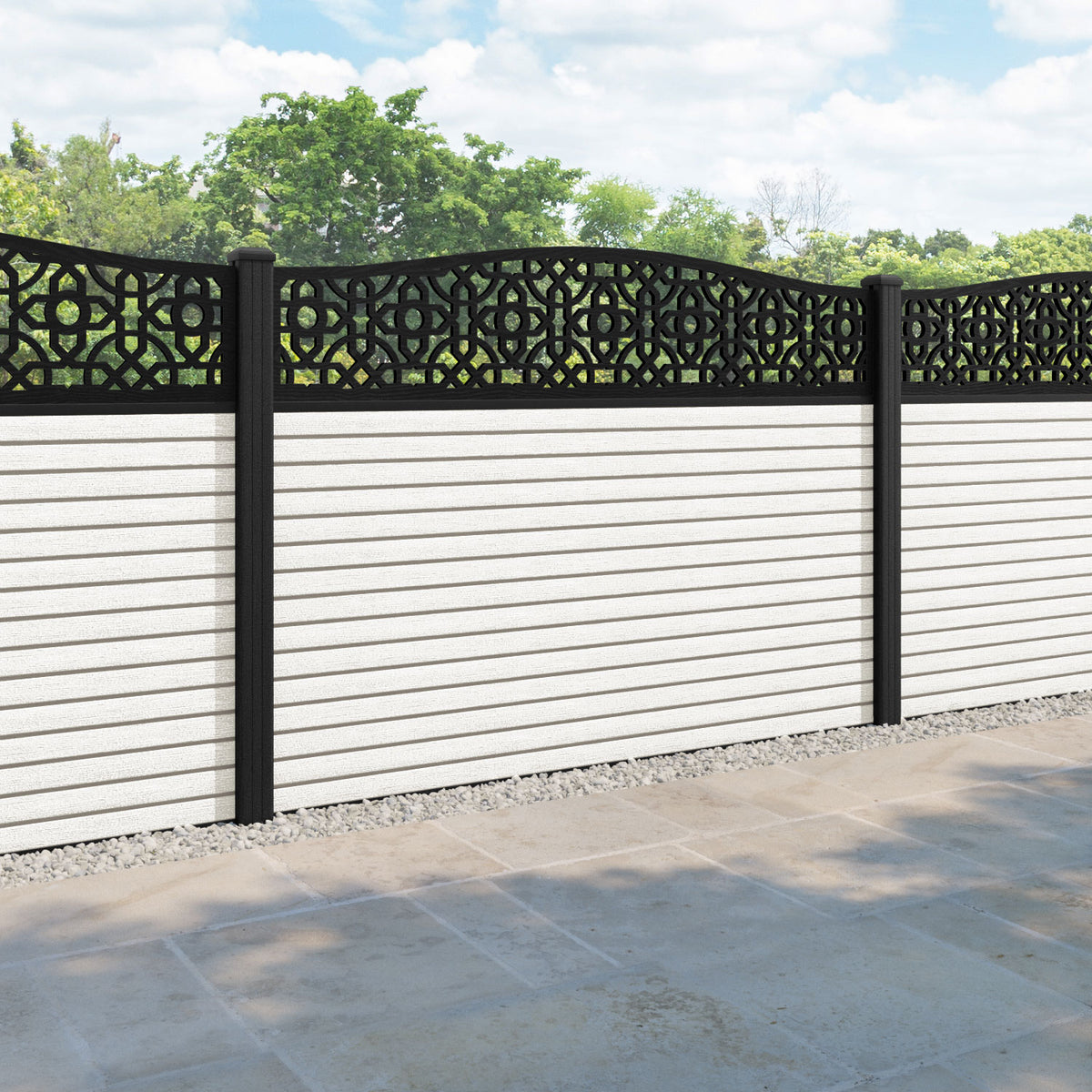 Hudson Nabila Curved Top Fence Panel Light Stone - with our composite posts