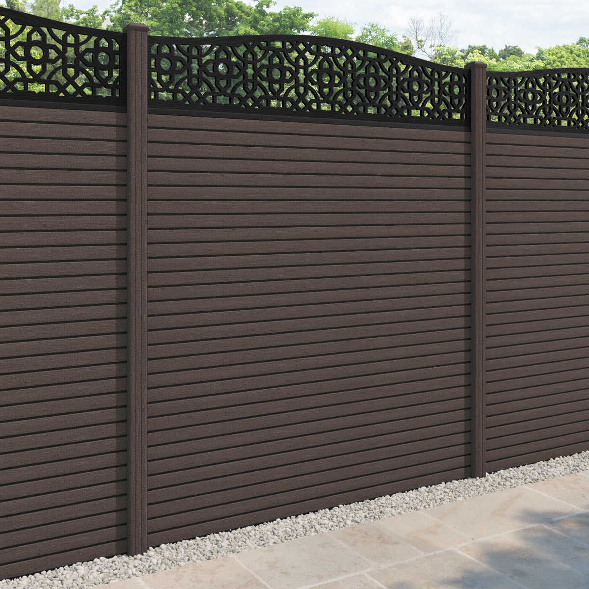 Hudson Nabila Curved Top Fence Panel Mid Brown - with our composite posts