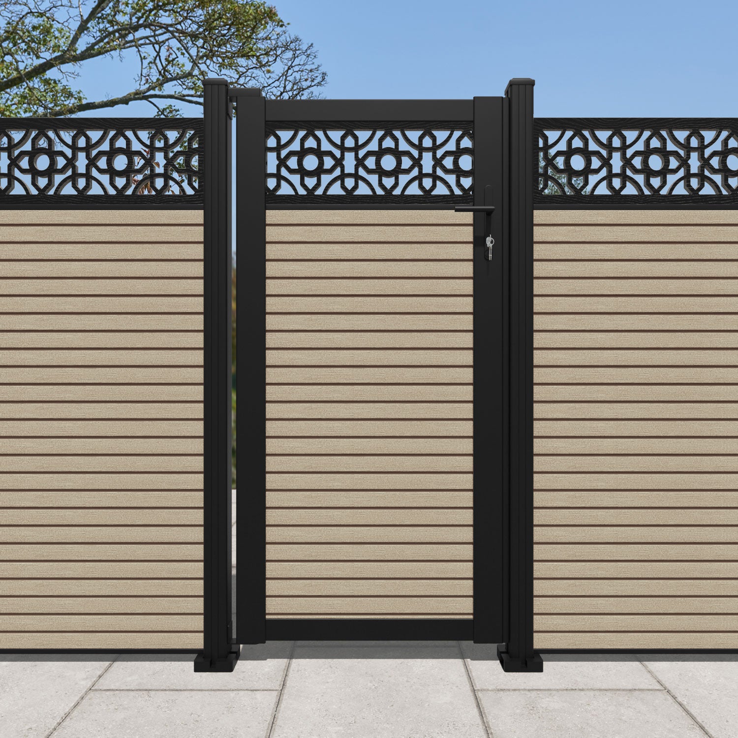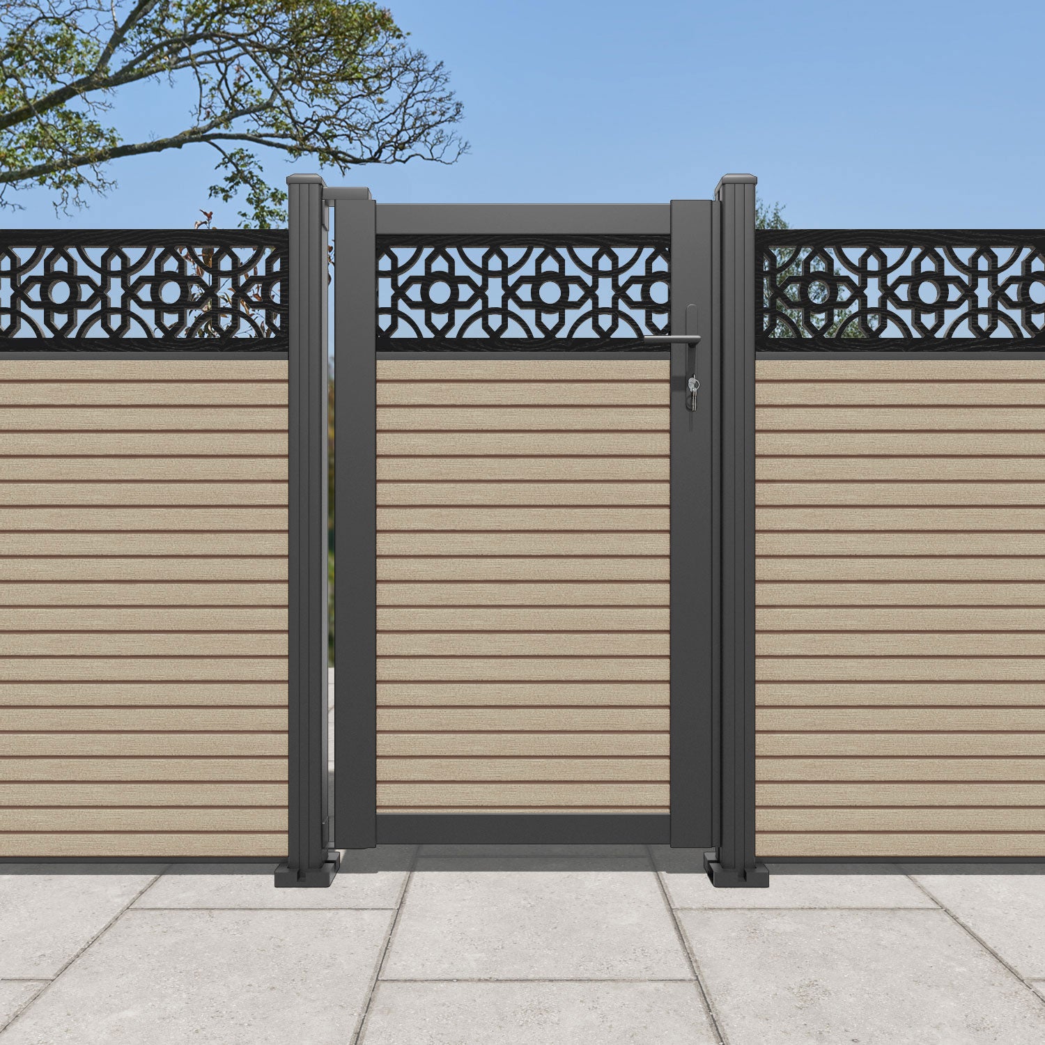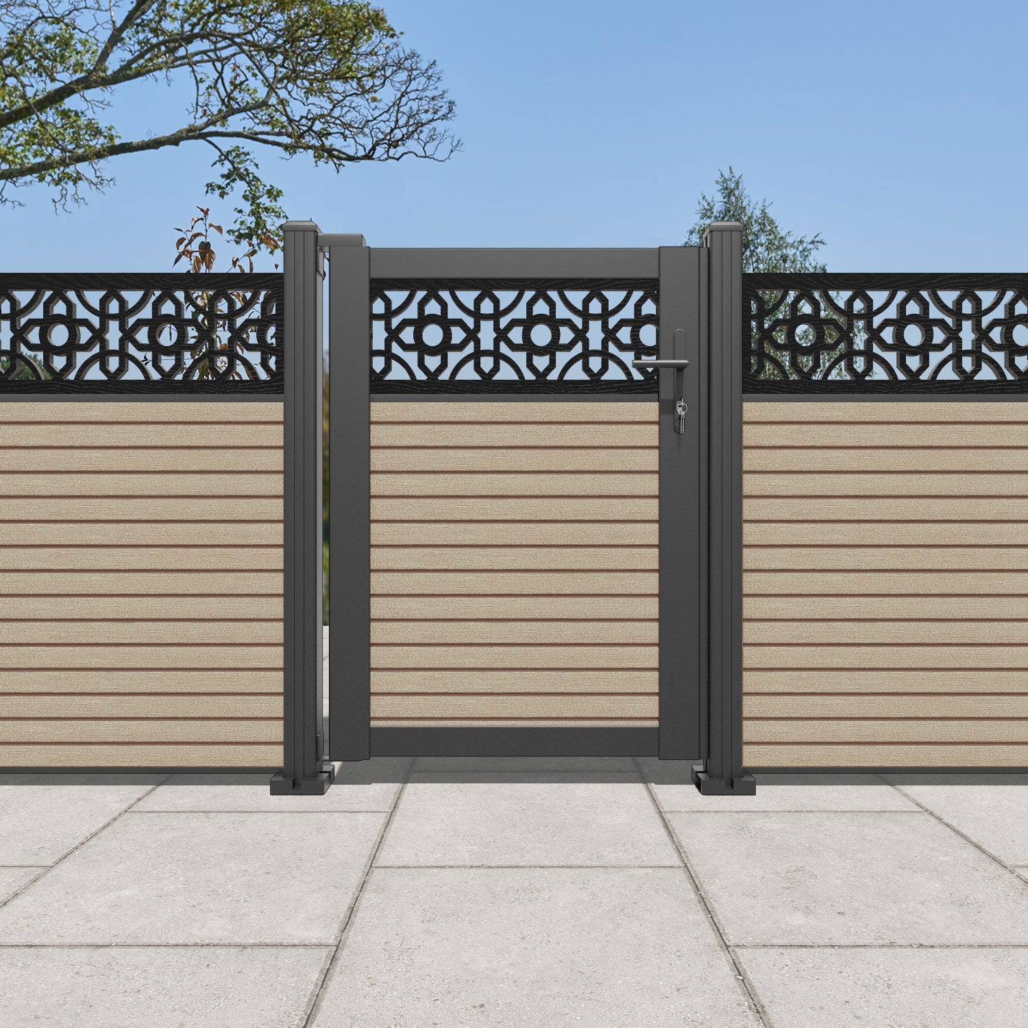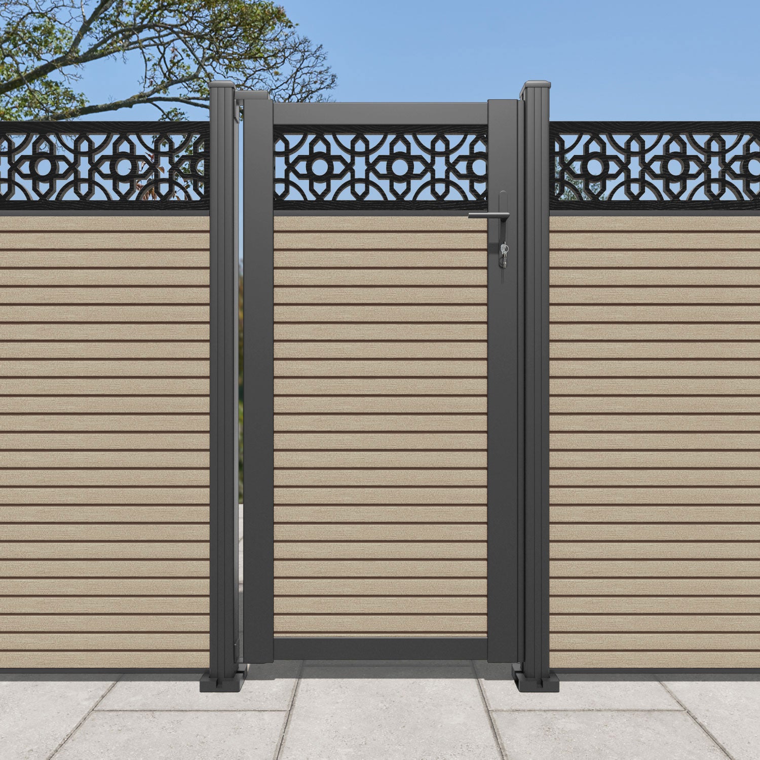 Pair your gate with our eco-friendly composite or aluminium slats for a seamless match to our fencing collections, ensuring a stylish and cohesive look.