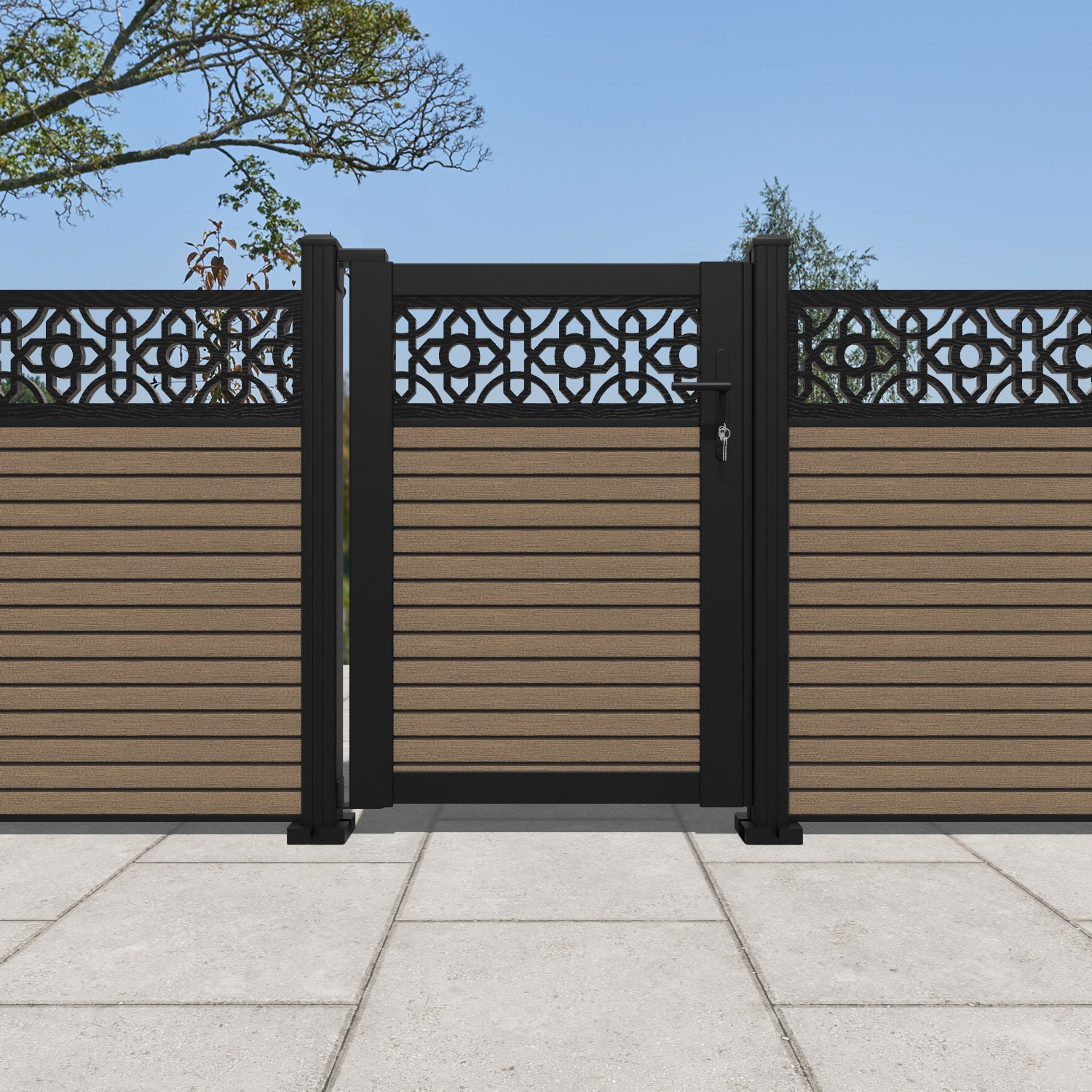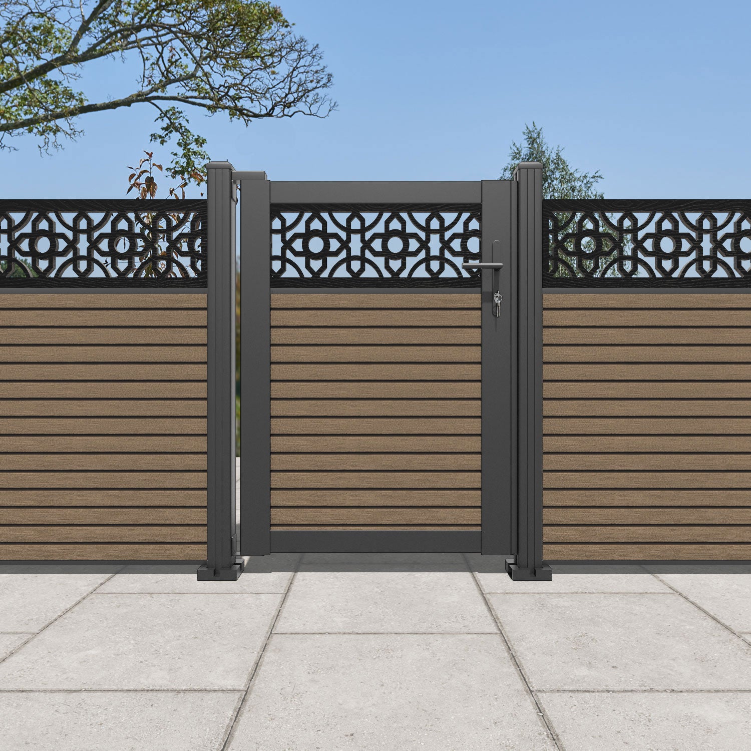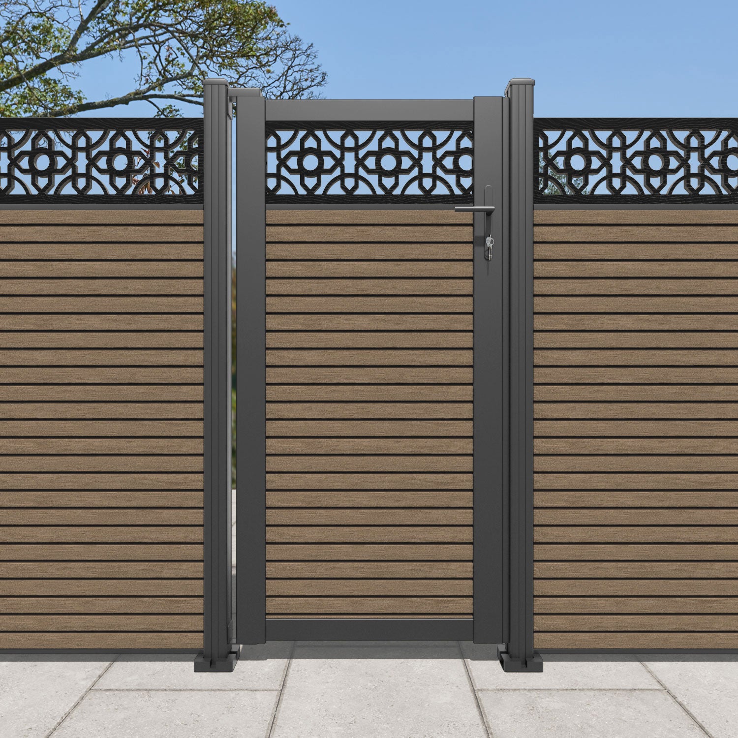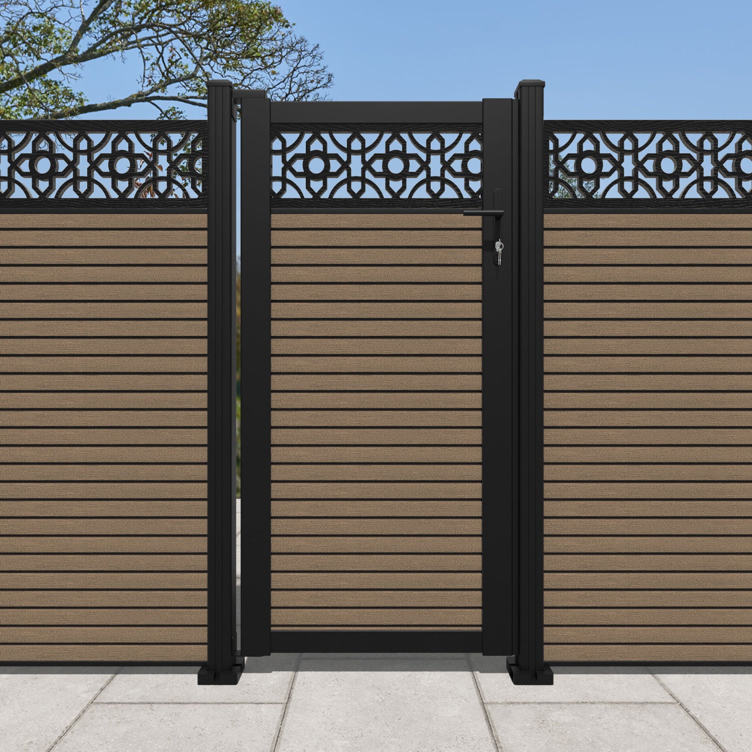 Pair your gate with our eco-friendly composite or aluminium slats for a seamless match to our fencing collections, ensuring a stylish and cohesive look.