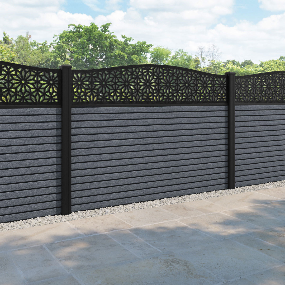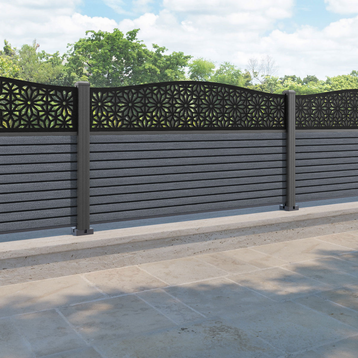 Hudson Narwa Curved Top Fence Panel Anthracite - with our aluminium posts