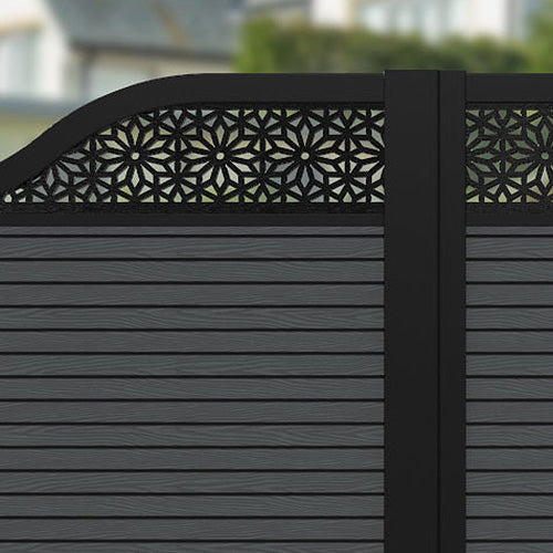 Hudson Narwa Curved Top Fence Panel - Dark Grey - with our aluminium posts