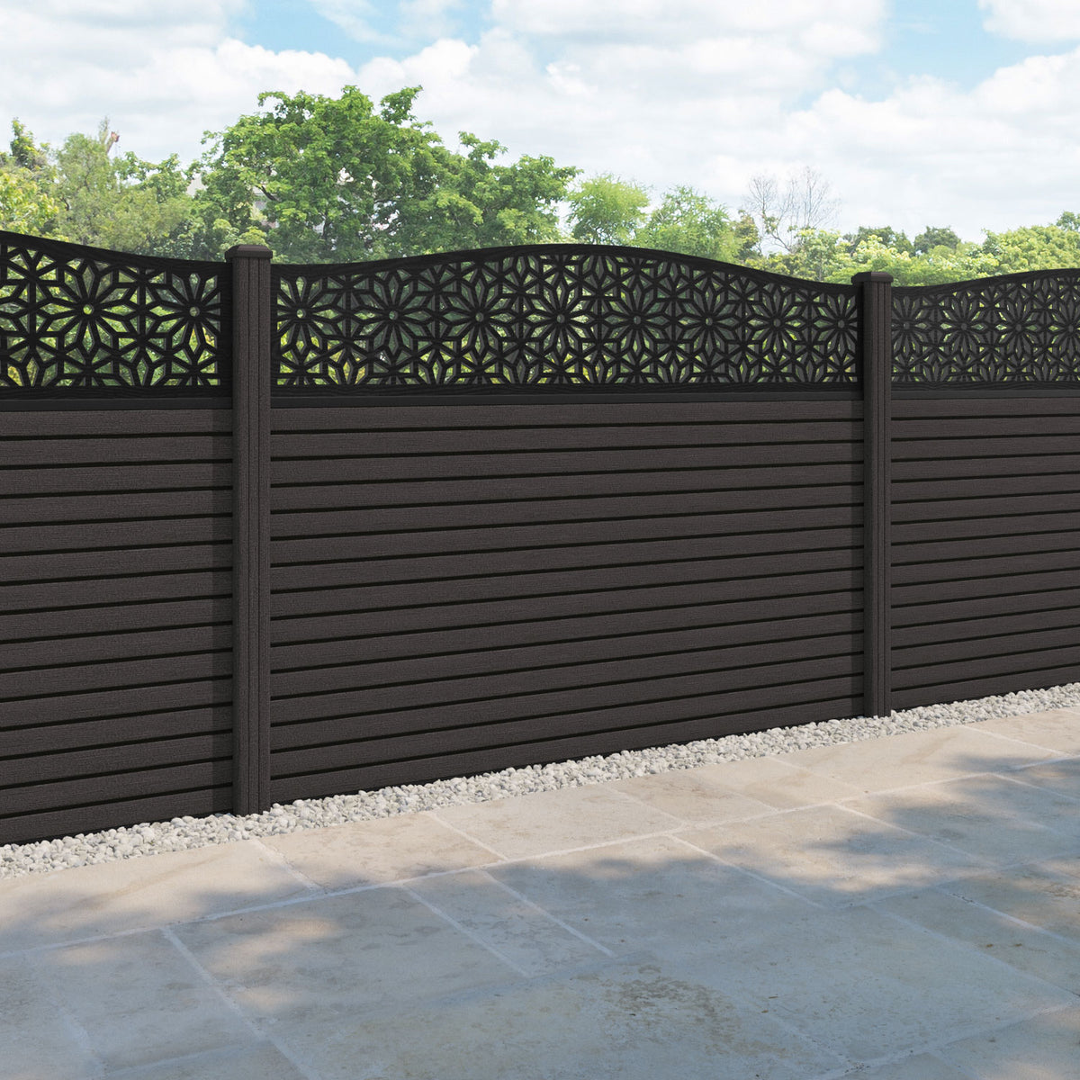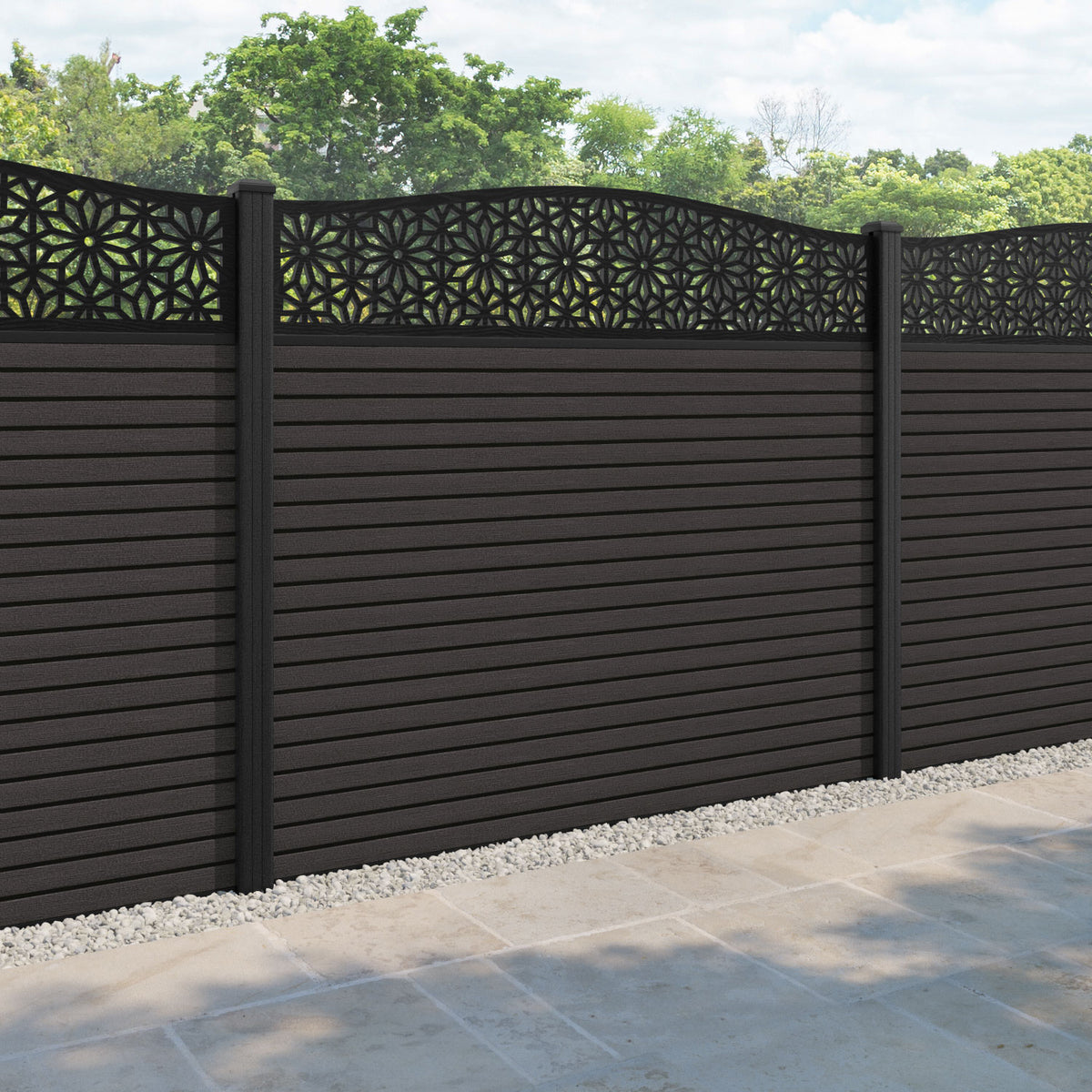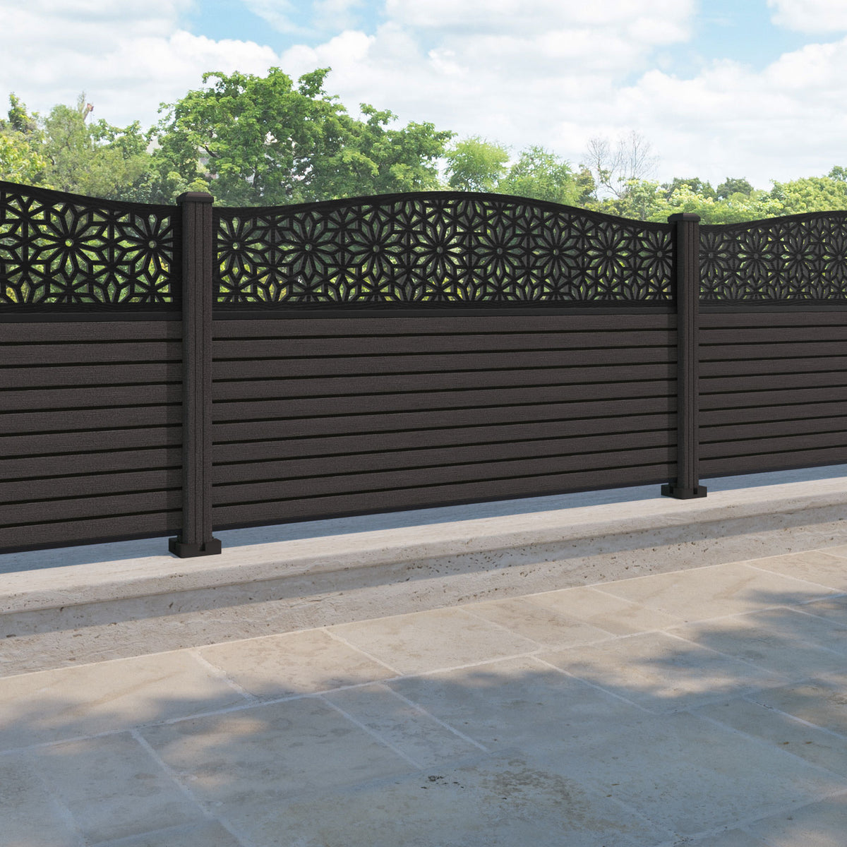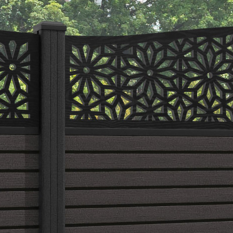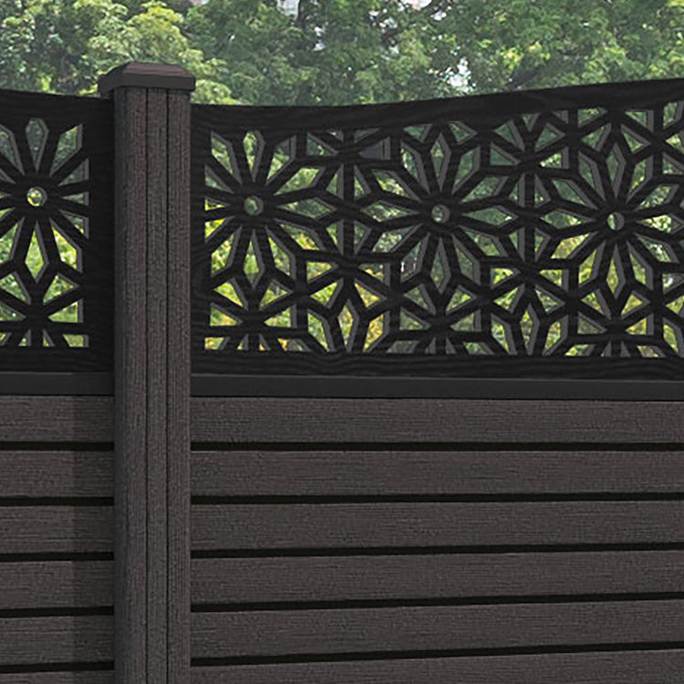 Hudson Narwa Curved Top Fence Panel Dark Oak - with our composite posts