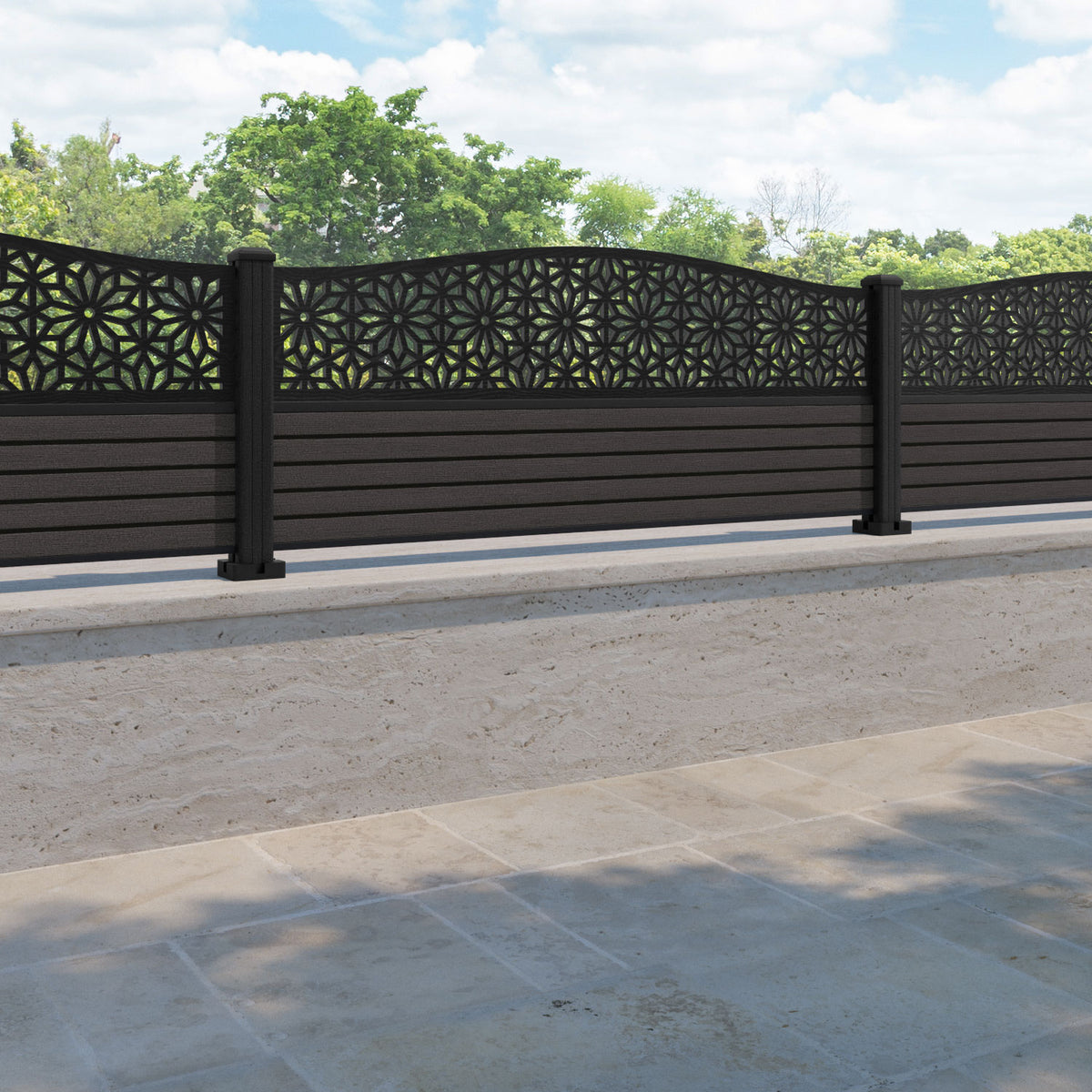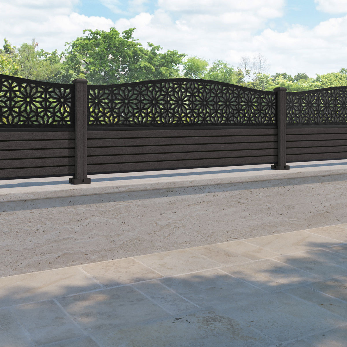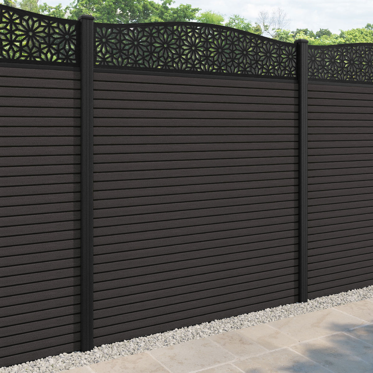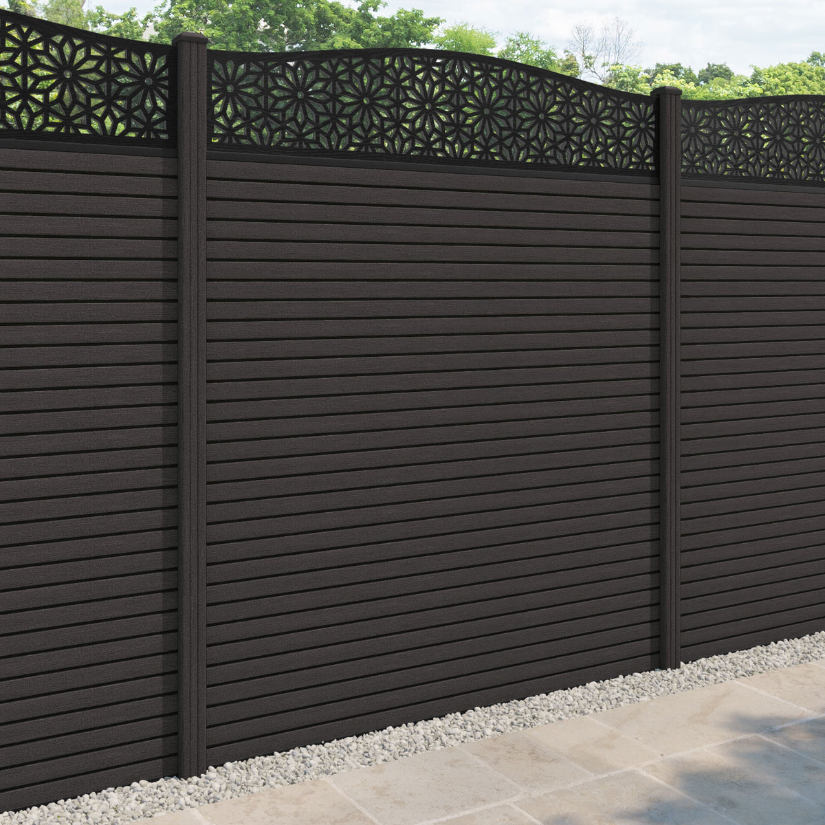 Hudson Narwa Curved Top Fence Panel Dark Oak - with our composite posts