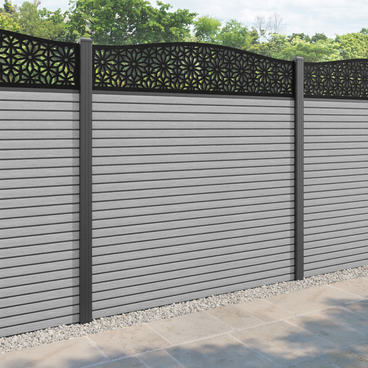 Hudson Narwa Curved Top Fence Panel Light Grey - with our aluminium posts