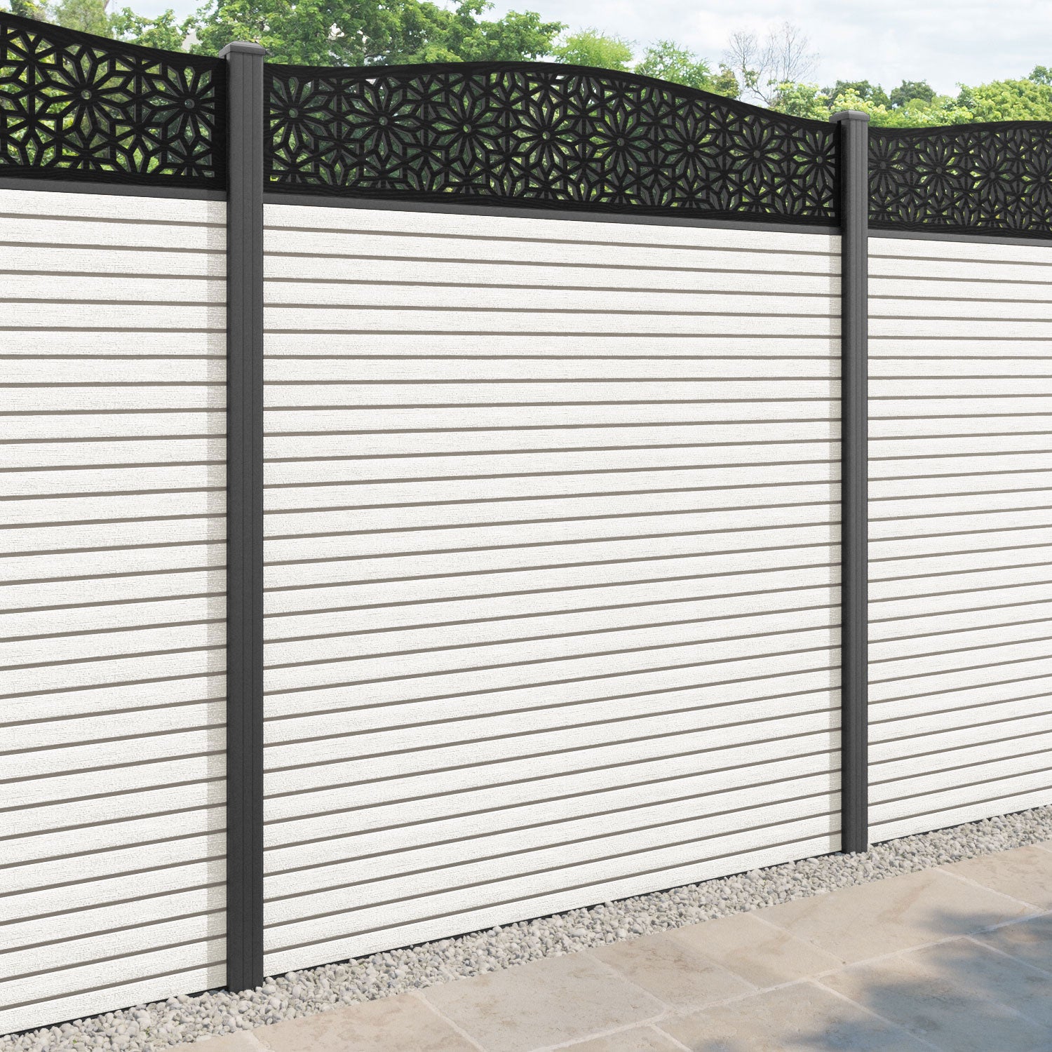 Our 18mm thick light stone premium composite fence slats paired with our high-grade aluminium fence posts and Narwa screen create an elegant, versatile, and eco-friendly fencing solution. Not only is this fencing responsibly sourced, it is also durable, long-lasting and requires no maintenance or painting.