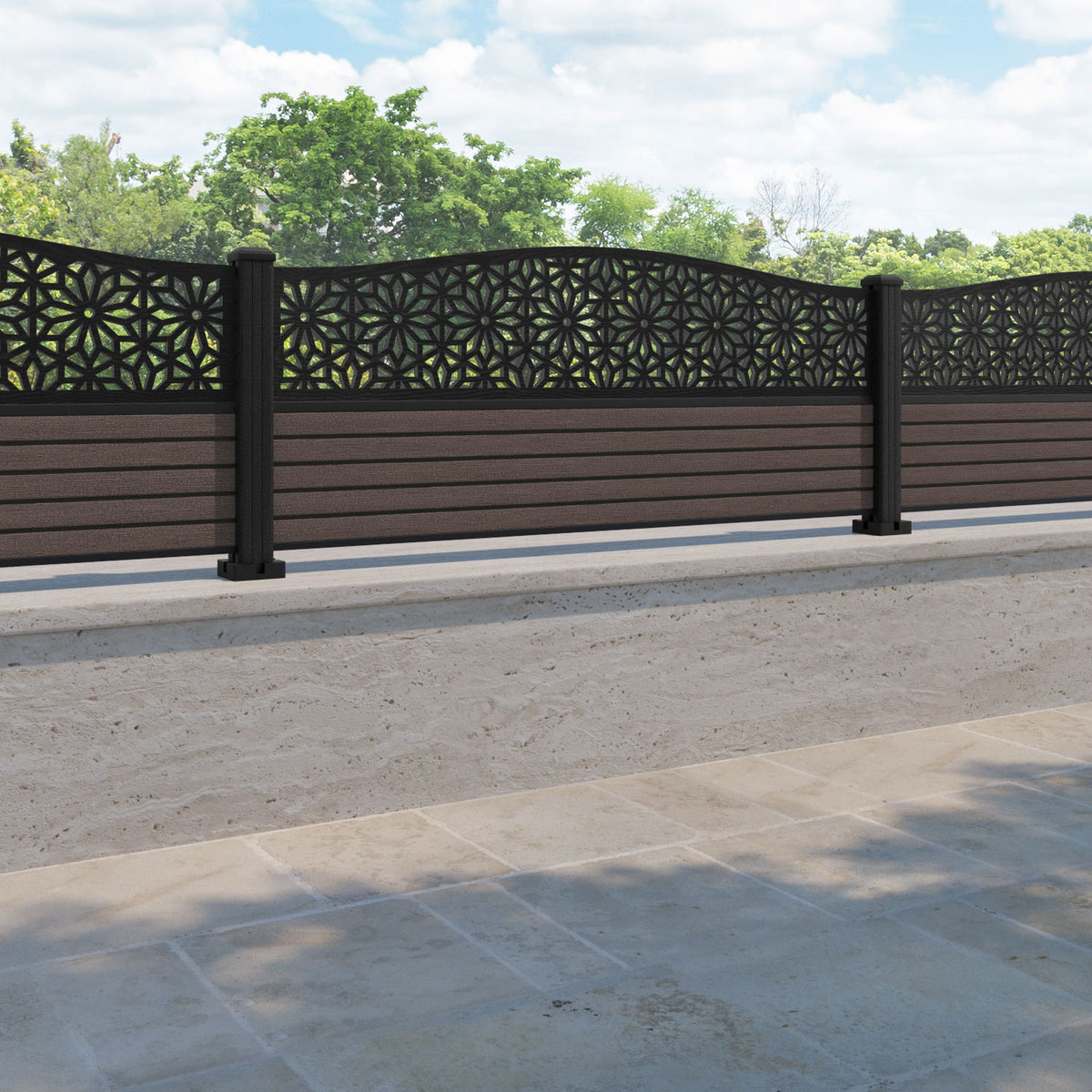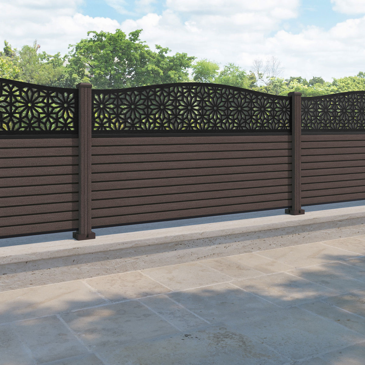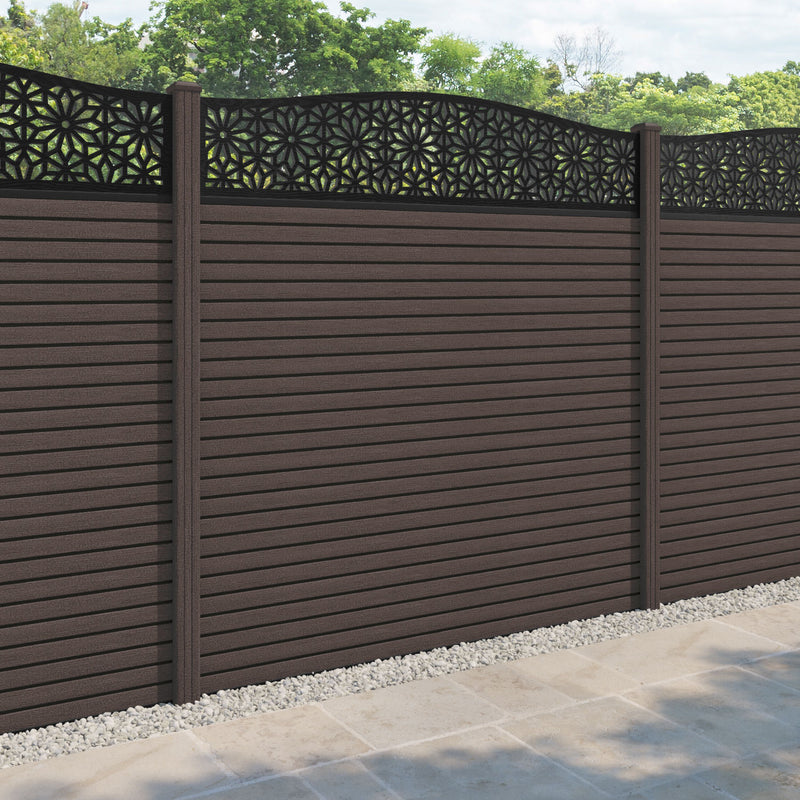Hudson Narwa Curved Top Fence Panel Mid Brown - with our composite posts