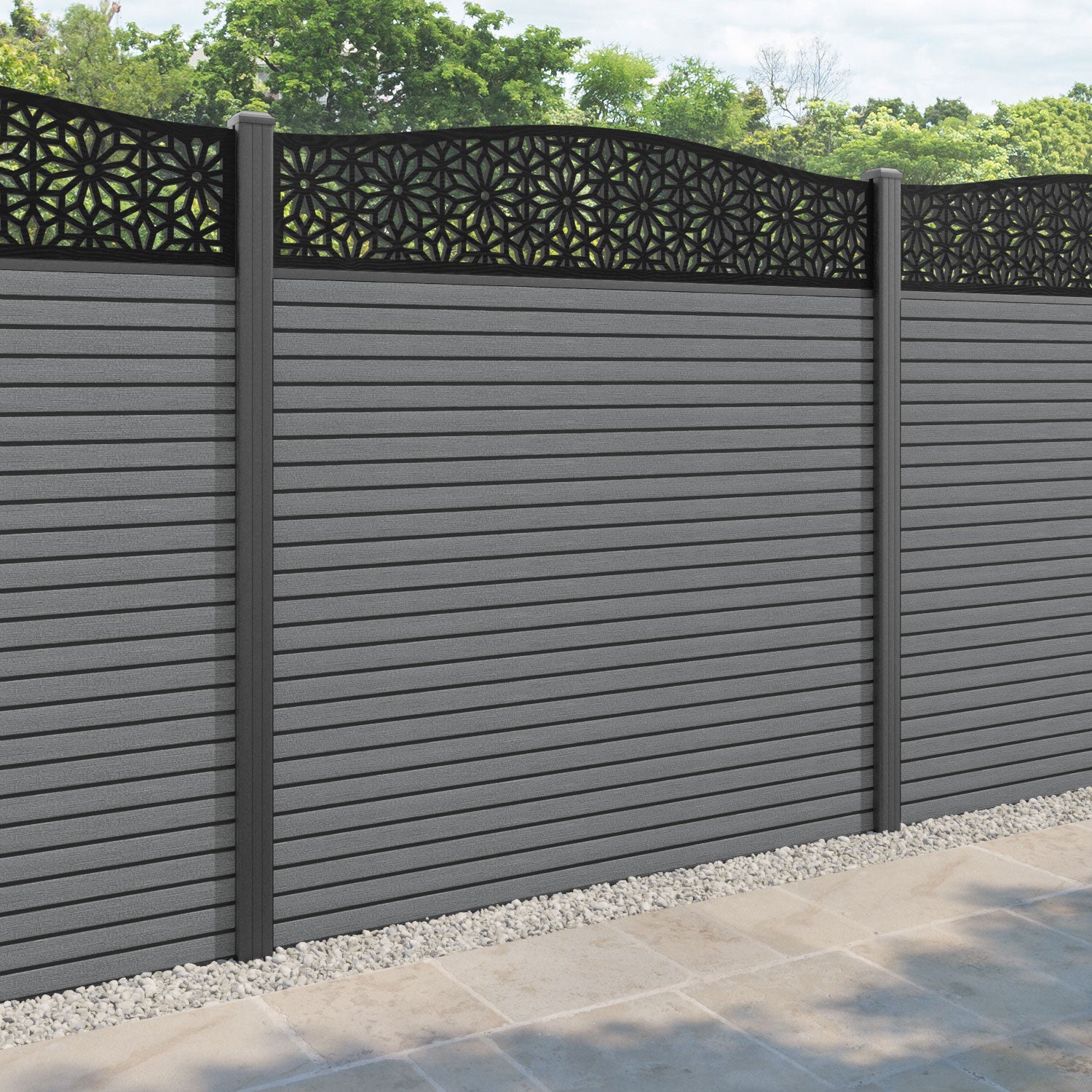 Hudson Narwa Curved Top Fence Panel Mid Grey - with our aluminium posts