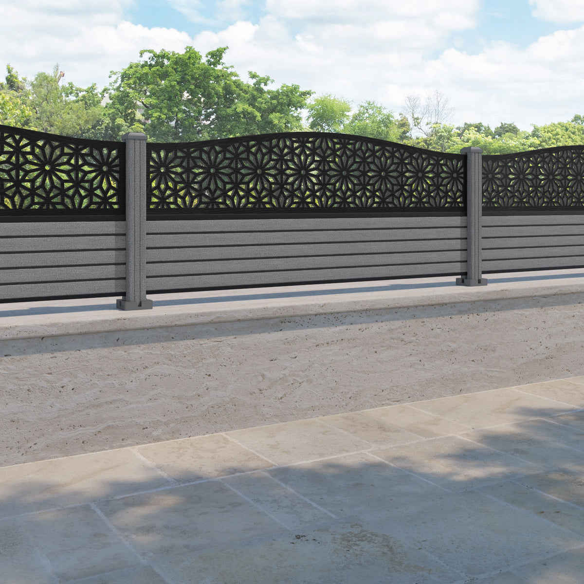 Hudson Narwa Curved Top Fence Panel Mid Grey - with our composite posts