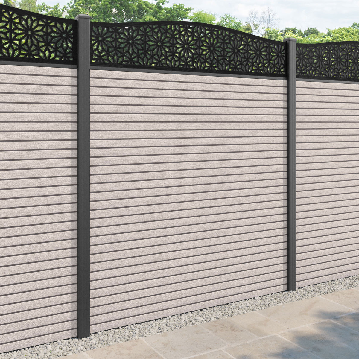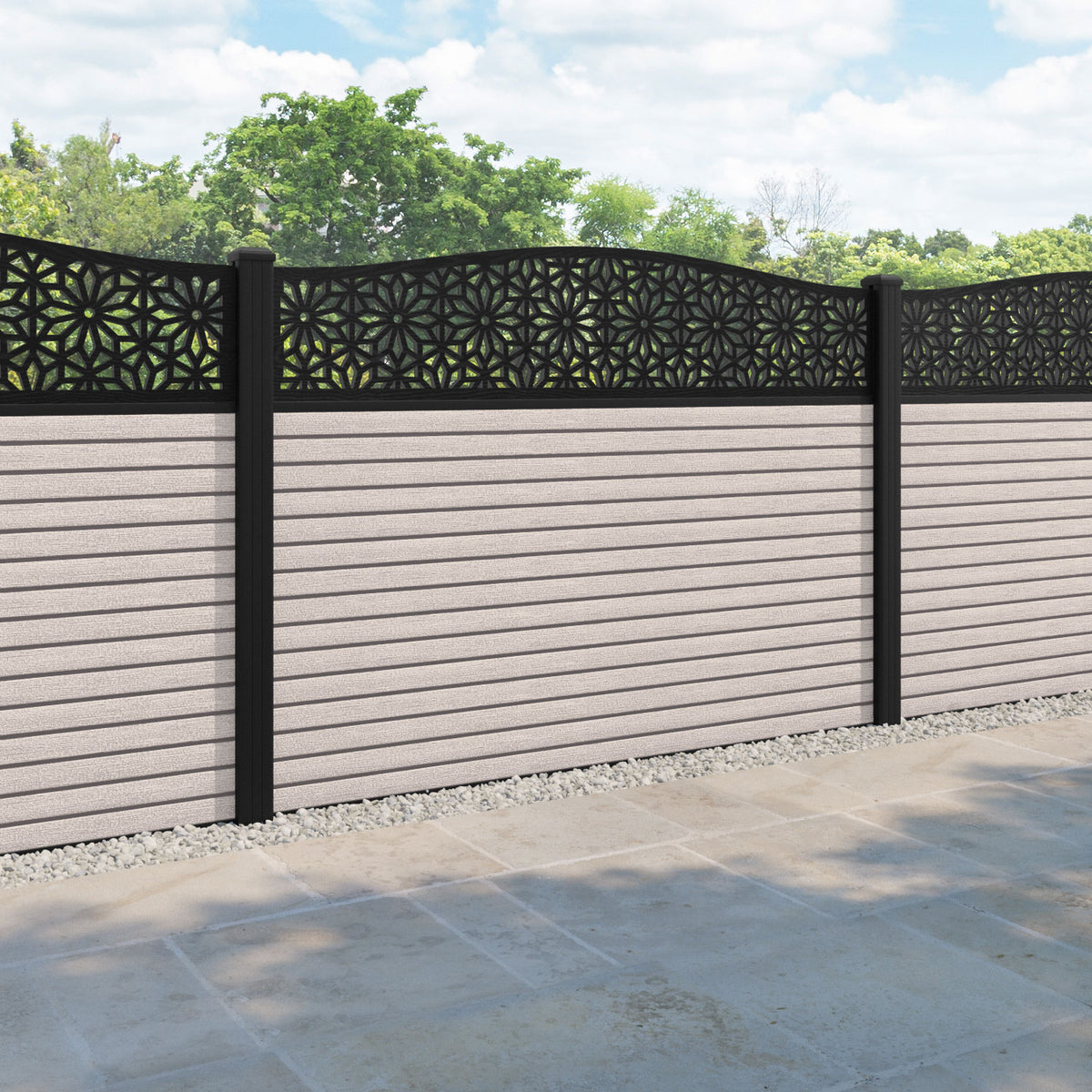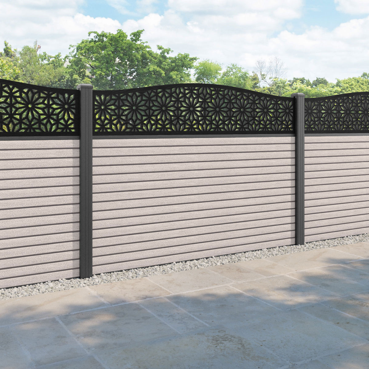 Hudson Narwa Curved Top Fence Panel Mid Stone - with our aluminium posts