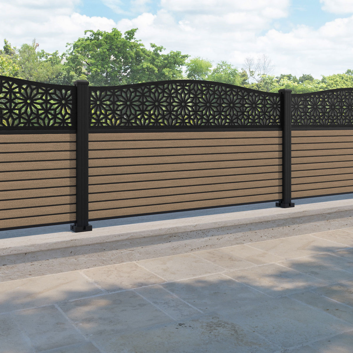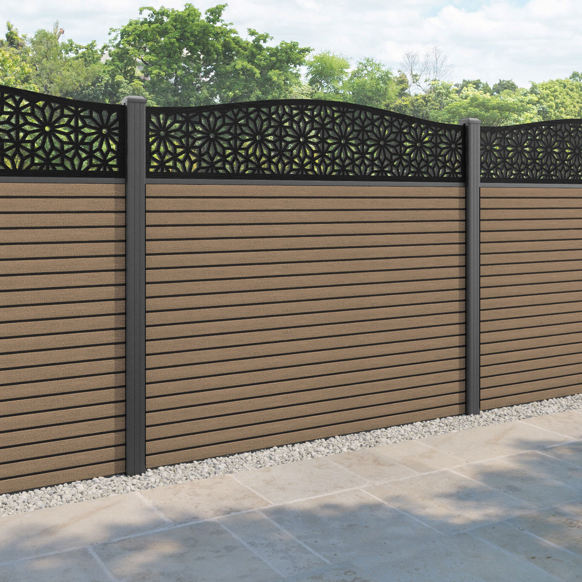 Hudson Narwa Curved Top Fence Panel Teak - with our aluminium posts